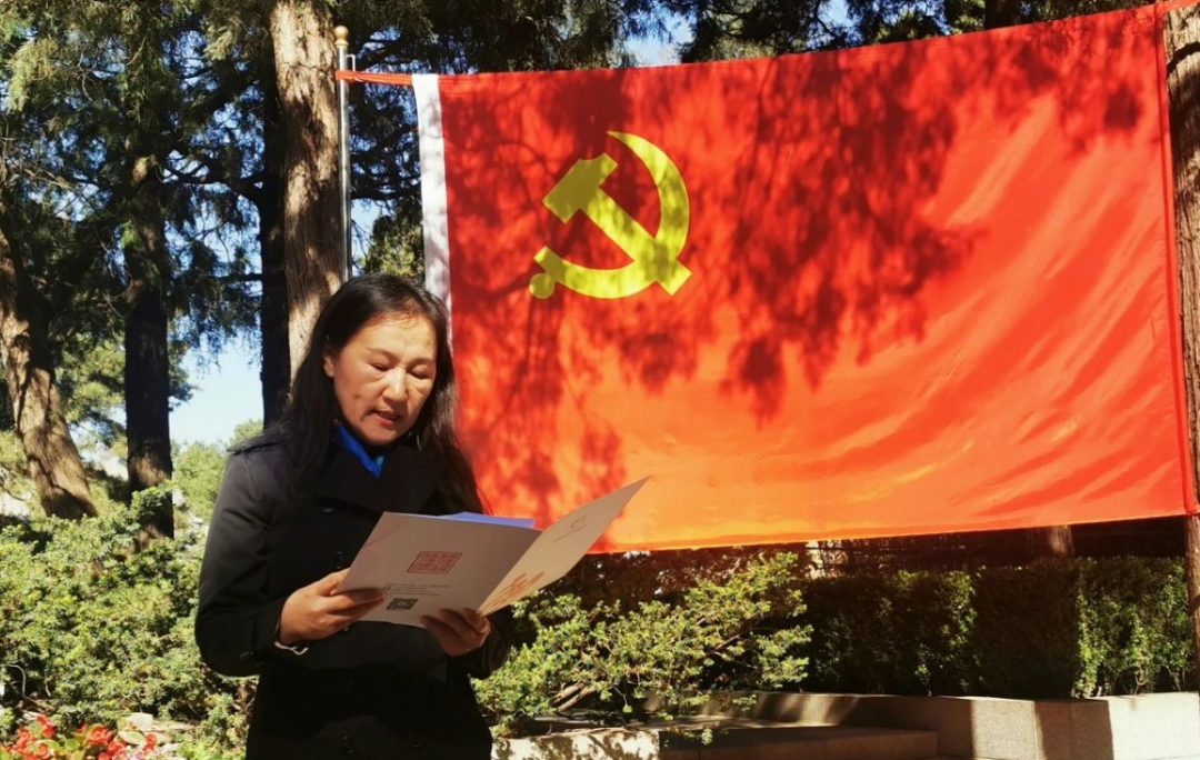 我们怀着崇敬的心情来到李大钊烈士陵园,凝聚在鲜红的党旗下,诵读其《青春》之文,感悟