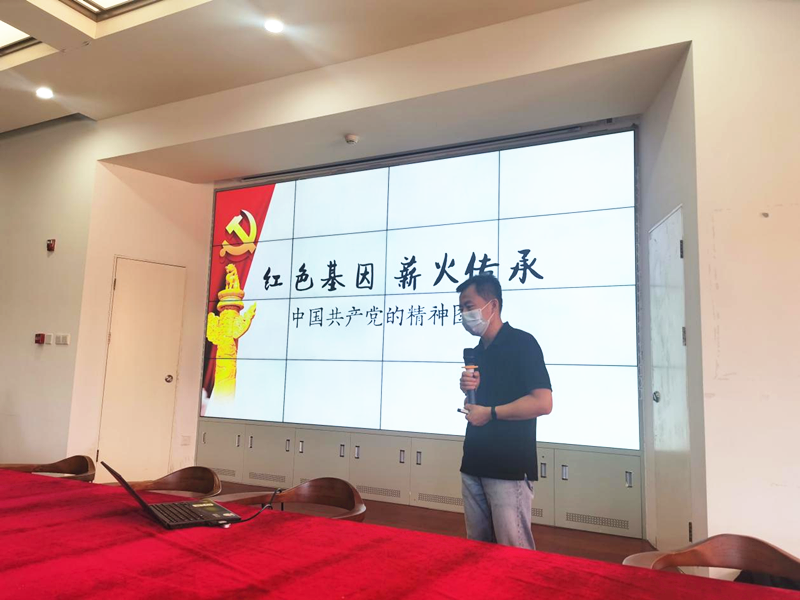 值此建党百年之际,为积极响应习近平总书记在全党开展党史学习教育的号召,进一步增强党员教师落实立德树人根本任务的思想自觉和行动自觉,在学校党委部署下,6月10日,高一年级教师党支部和朝阳行政、贯通项目联合支部邀请我校历史学科组长郭志强老师为党员们做题为《红色基因 薪火相传——中国共产党人的精神谱系》专题党课。两个支部的四十多名党员聆听专题党课。