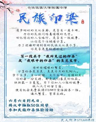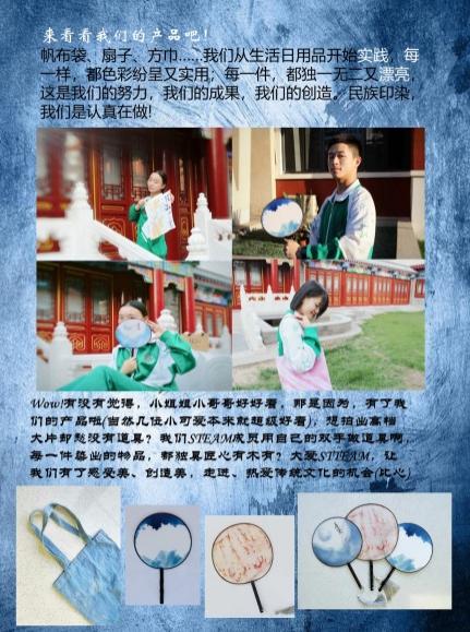 以Steam课程民族印染为例,老师发挥语文在文字、文学、文化、情怀等方面的价值,引领学生去触摸民族图腾文化,在设计印染图案中传达对家乡、对民族的浓浓热爱。