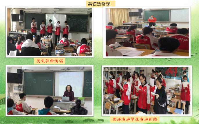 为了满足不同学生的个人兴趣和发展的需要,为学生提供多样化选择的余地和发展空间,扩大学生的知识面,英语组开设了英语演讲技巧、听歌学英语、英语影视赏析、英语写作、英语阅读、英语笔译、英语培优等选修课,必修和选修课程共同促进了学生的英语素养的形成。