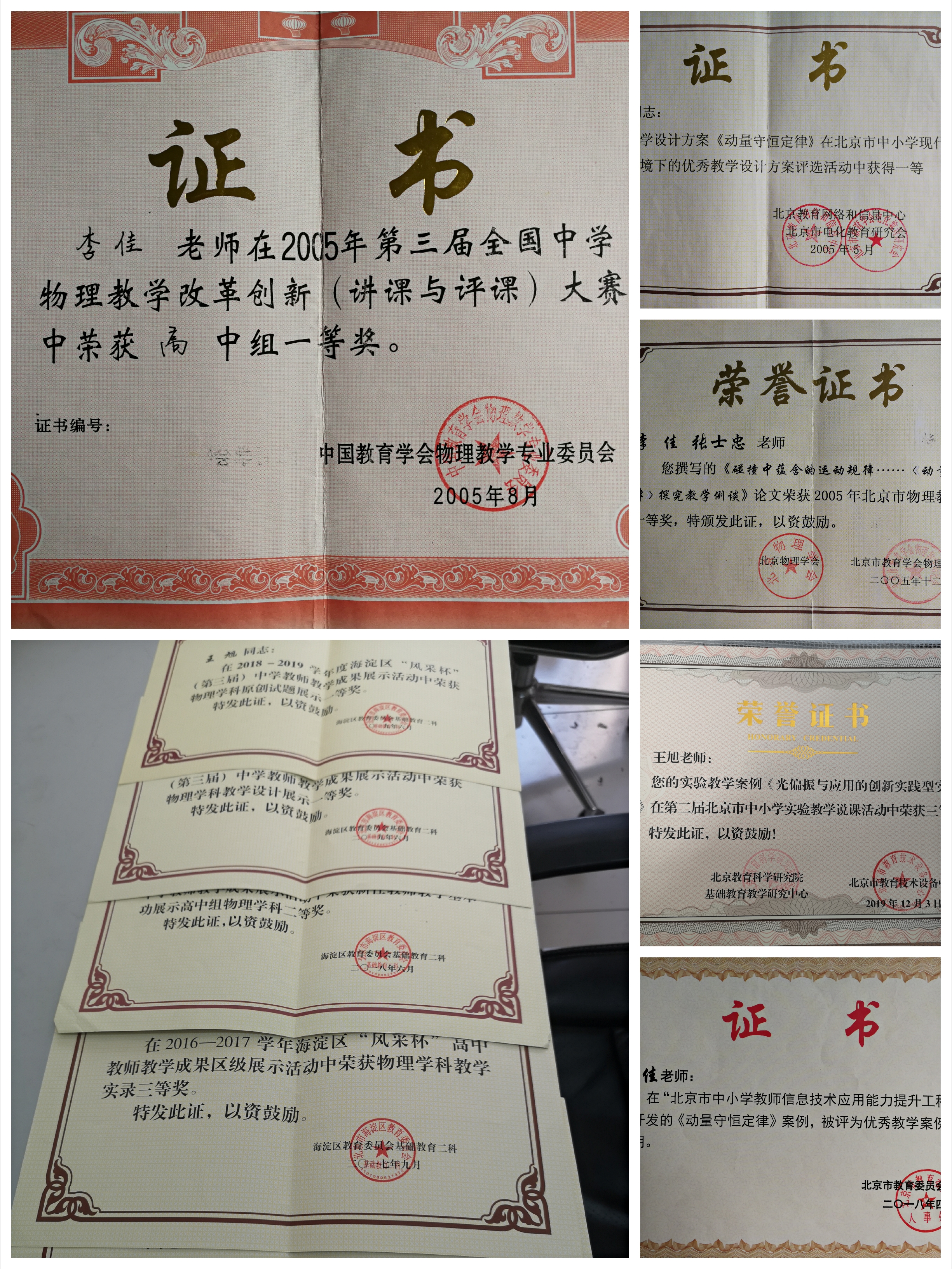 物理教研组的教师们拥有厚实的学识积累、浓厚的专业兴趣和丰富的教学经验。有多位教师多次在北京市级、海淀区级的赛课、说课、课堂设计等教学比赛中获奖。同时,我们也非常注重WilliamHill中文官方网站,探索教学认知规律。近年来所撰写论文众多,分别发表于核心期刊,和在市级、区级比赛中荣获一、二、三等奖。