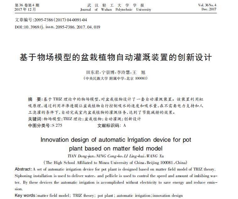 其中我校2018届学员更是以自己出色的表现,结合自己研究的“盆栽植物自动灌溉装置”在武汉轻工大学学报上发表一篇文章。