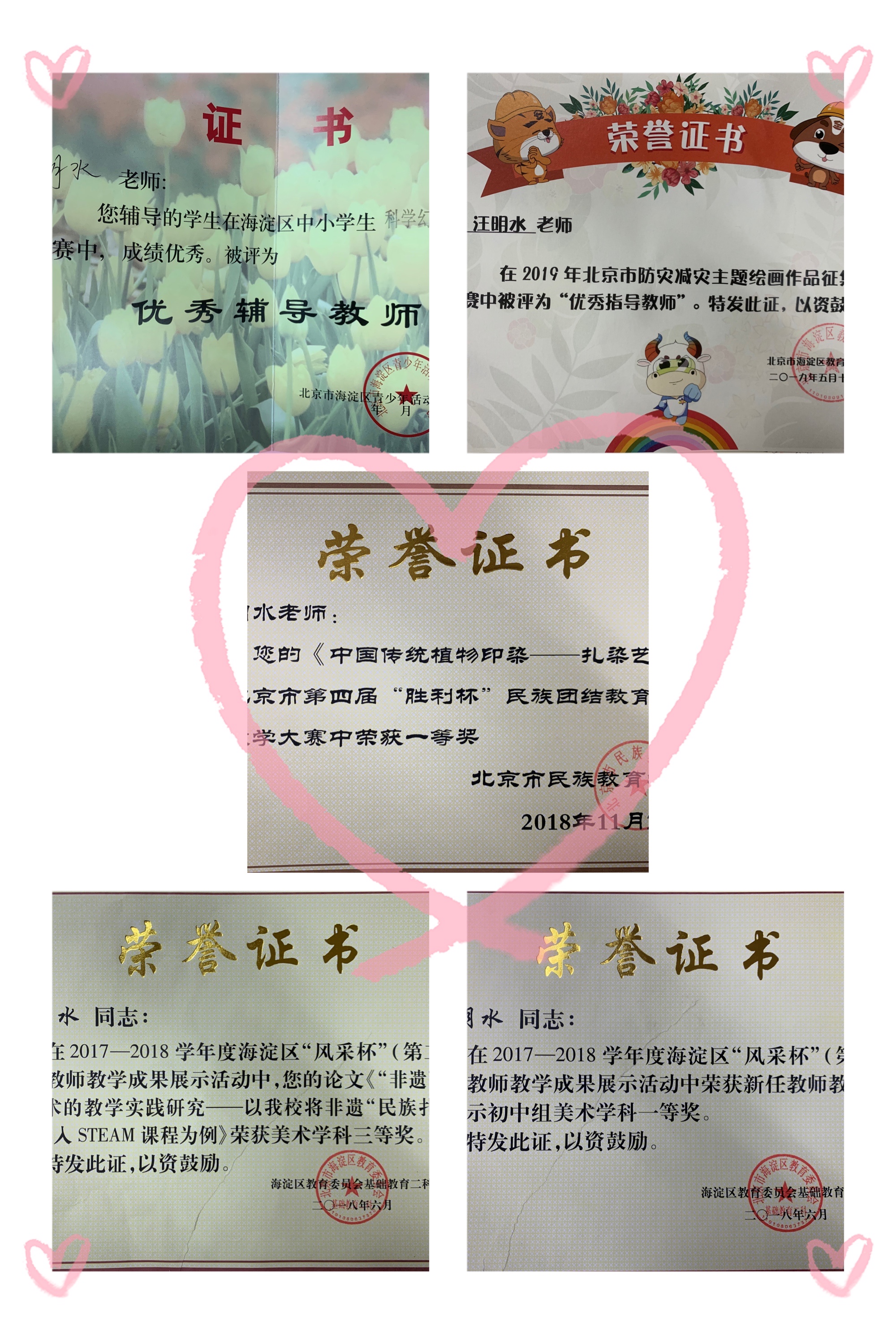 近三年,艺术组教师参与市级、区级课题5项,市级公开课1次,区级公开课2次,作为主讲嘉宾参与到国家级、市级、区级活动8次;作为主编、编委参编著作4部,发表作品或论文6篇;获奖课例与论文30余次;辅导学生团体获奖近20次,覆盖近300名学生。