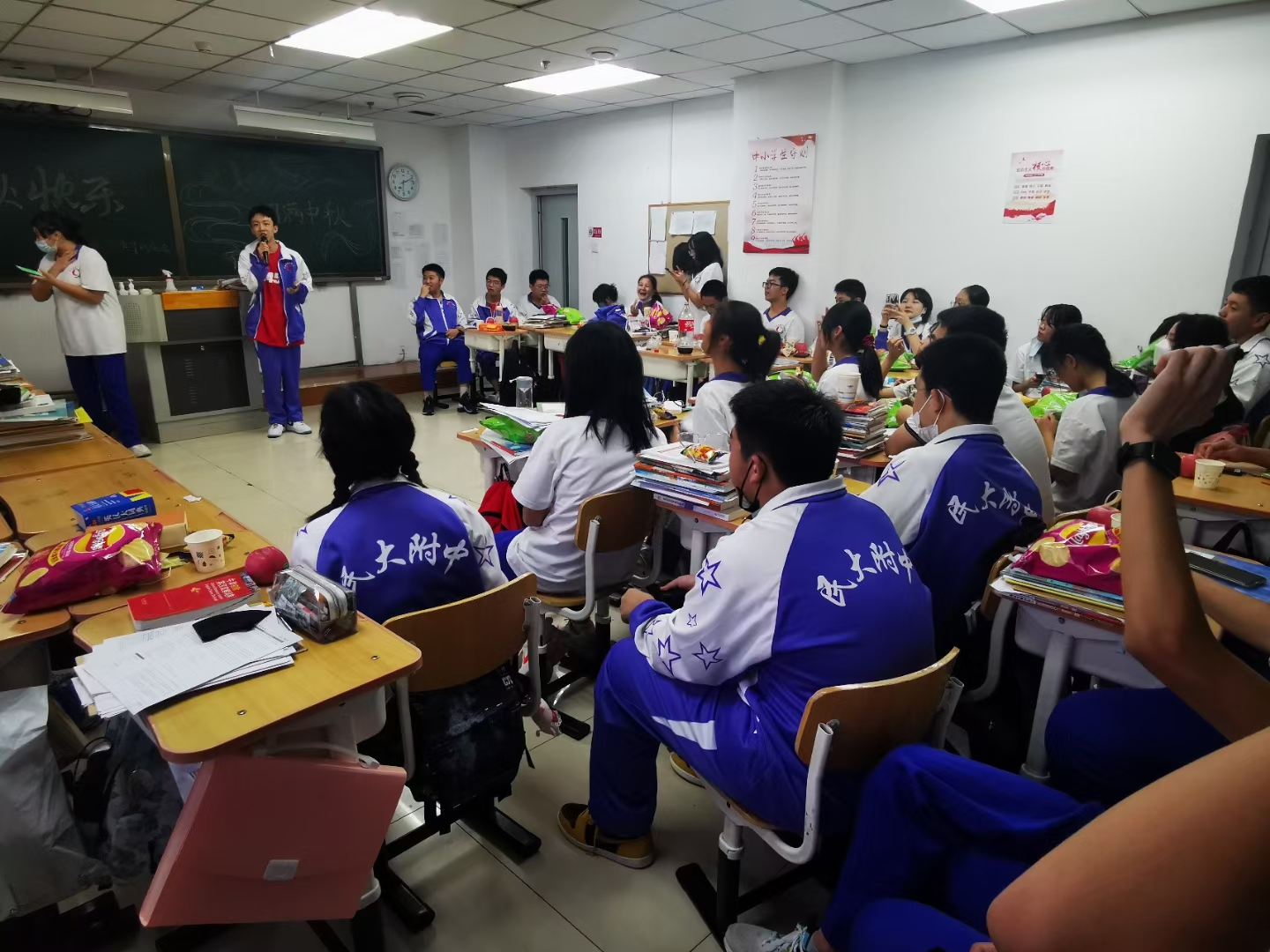 9月21日晚,各年级以班级为单位组织全体同学开展了各具特色的中秋节联欢活动,民附师生在一阵阵欢歌笑语声中共度温馨、快乐的佳节。