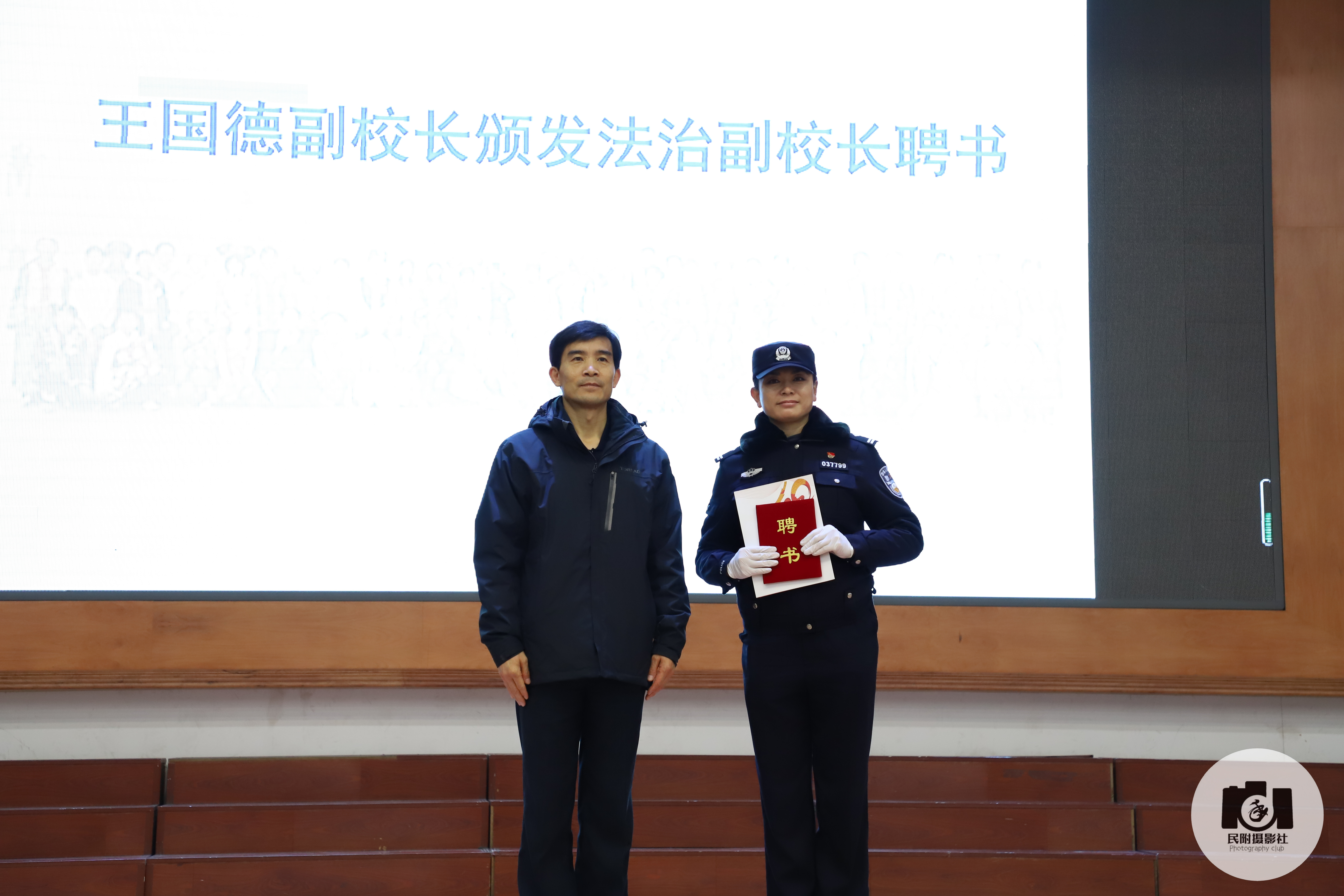 王国德副校长为庞博警官颁发聘书