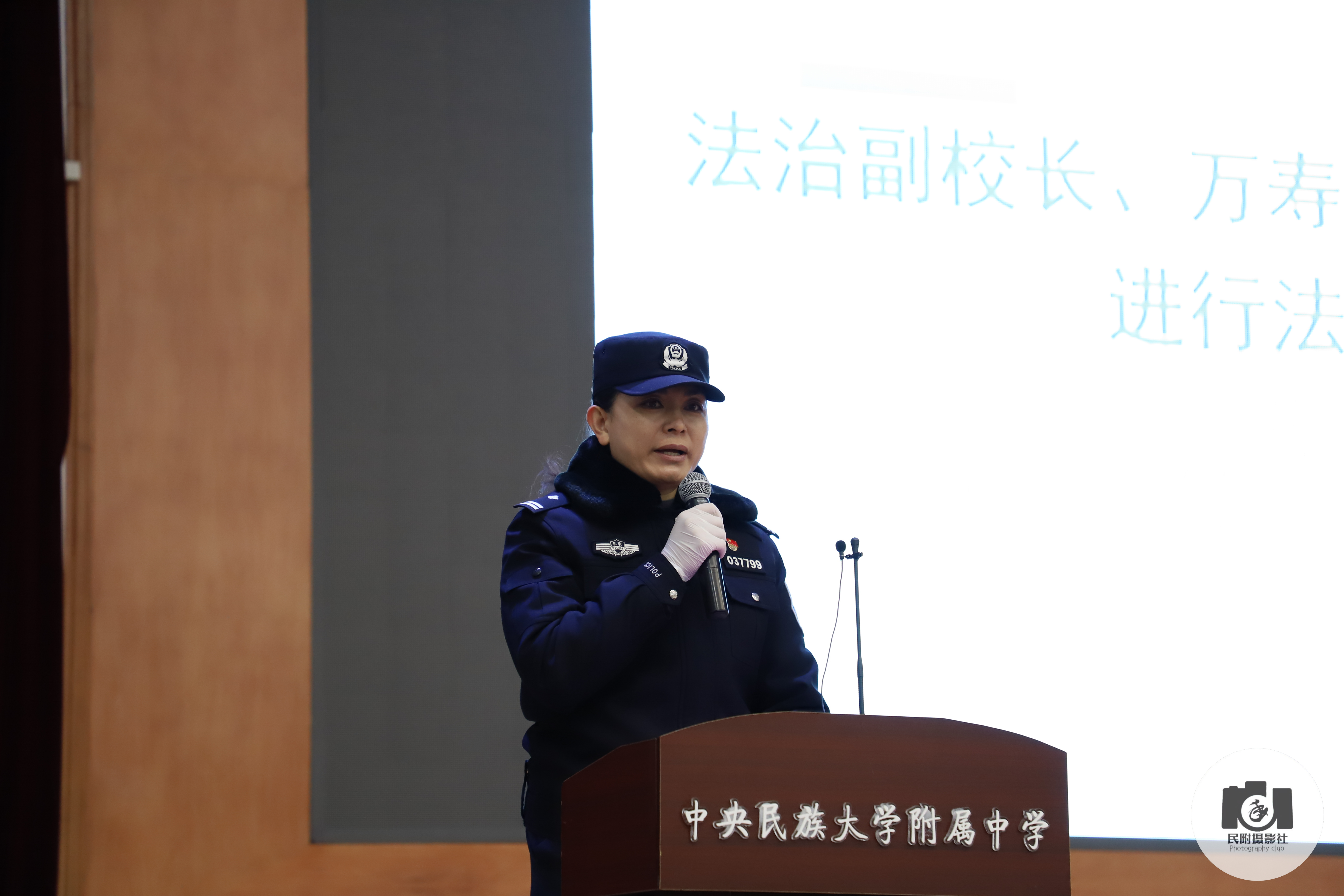 庞警官从自身公安工作的经验出发,根据学生的年龄和心理特征,运用通俗易懂的语言,向学生讲解宪法、刑法等法律知识,教育学生要从自我做起,从遵守校规校纪开始,走出校门后更要将边界意识、规矩意识和法律意识融入生命中,避免受到意外伤害和不法侵害。庞警官倡议全体民附学子,要以宪为纲,敬畏法律,严格守法,谨言慎行,大力弘扬宪法精神,共同建设法治中国。