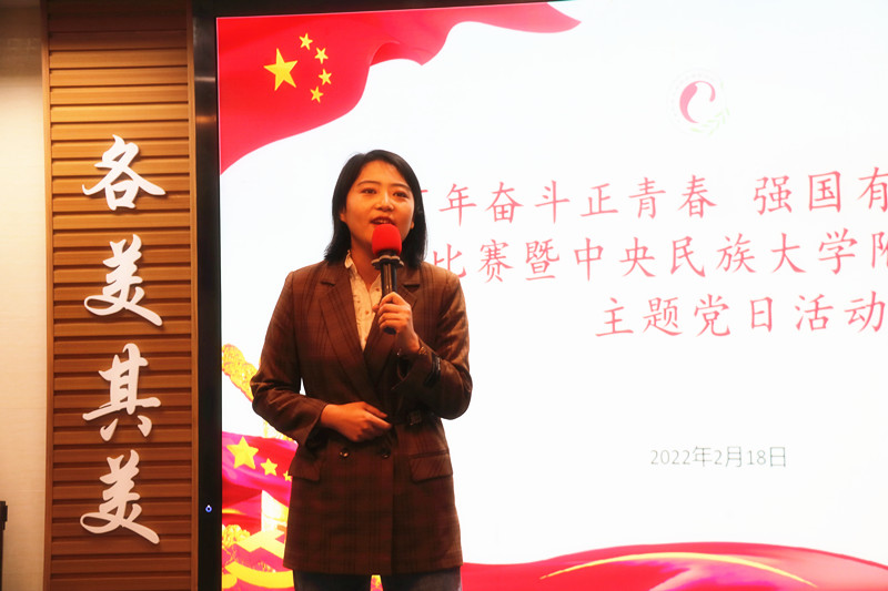 为大力弘扬伟大建党精神,讲好民附团队育人故事,激励各族师生砥砺奋进,我校于2022年2月18日下午,在海淀校区举办了主题为“百年奋斗正青春 强国有我勇担当”的演讲比赛暨2022年全校党员主题党日活动,党委书记佟丽娟,党委副书记、常务副校长唐洪波及其他校领导、各支部党员参加。