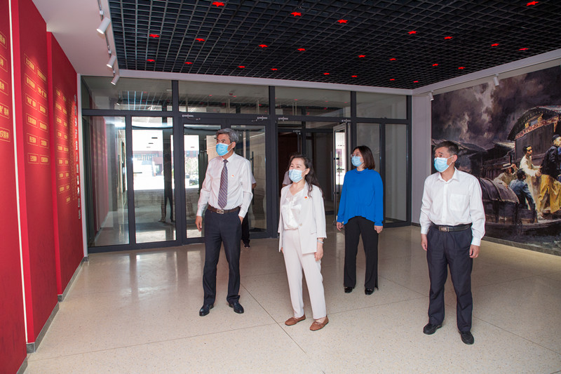 佟丽娟一行在王建学校长陪同下参观学校红色文化长廊