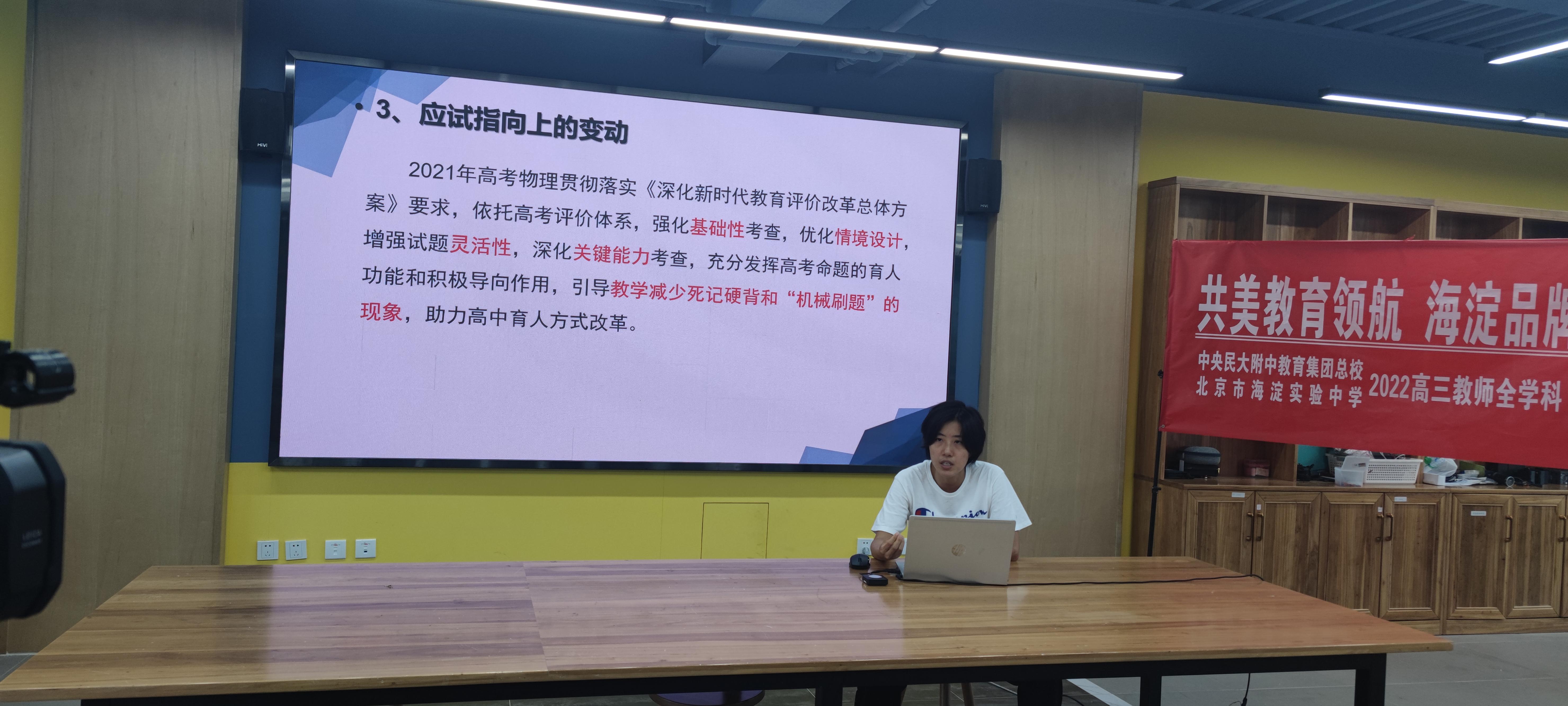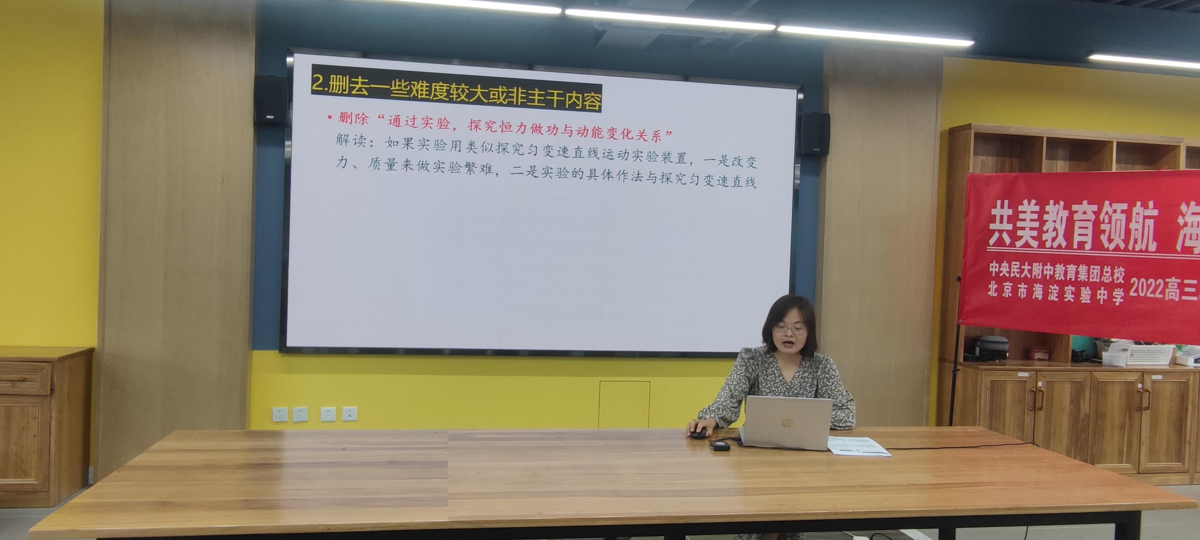 海淀实验中学高三物理学科组长陈大鹏老师在线上与分校、共建校、联盟校教师进行互动交流,分享教学经验与成果。