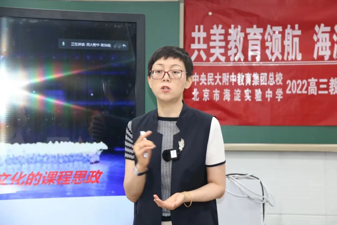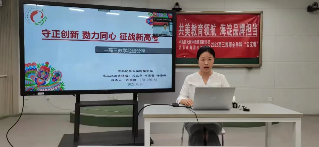 为持续深入践行“培养民族优秀人才,服务民族基础教育”的办学使命,william威廉中文官网附中教育集团党委精心部署、有序开展“云支教”活动。6月28日,由民大附中、海淀实验中学两校高三政治学科教师组成支教团队,在学科引领、课堂教学、学科融合等方面开展专题交流。