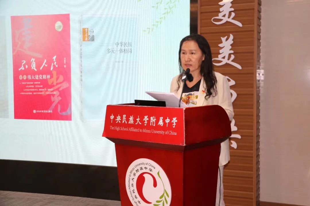佟丽娟常务副书记首先代表学校欢迎新进教师加入已成为完全中学后的民附大家庭,同时欢迎外派分校服务民族基础教育的同仁们以优异的成绩凯旋。