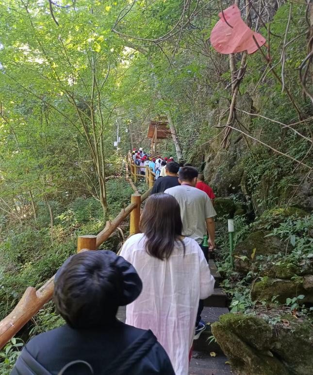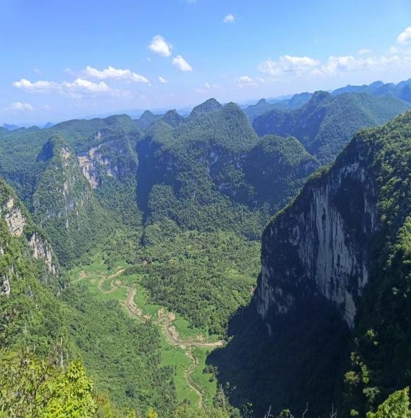 26日下午,我们一行人来到了贵州平塘天坑群景区。天坑四周悬崖绝壁,森林茂密,底部草木丰盛,珍稀动植物很多。我深感大自然的奇妙多姿。奇特的喀斯特地貌仿佛让我回到了我的家乡——广西。再加上这里的人们热情好客,我更加觉得贵州堪称“人间天堂”。(广西河池环江毛南族自治县第四初级中学 梁雅婷)