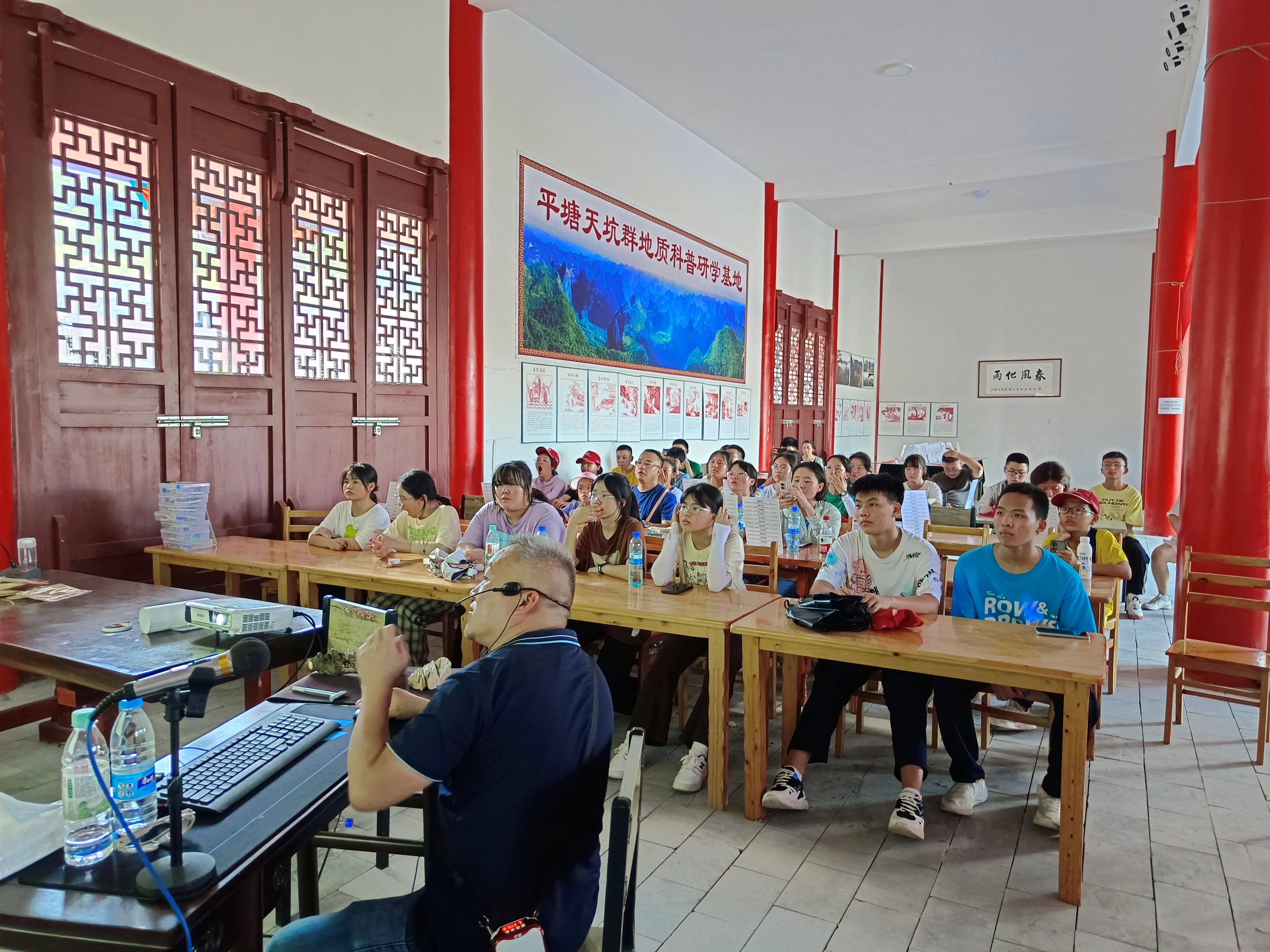 我们乘车到天坑所在地,沿着崎岖的山路,走过了两个巨大的天坑,之后参观了三个博物馆,还上了一堂关于化石、矿石、古生物的课,感悟良多,记忆深刻。对我来说是一次非常有意义的活动。(广西桂林恭城民族中学 彭柏然)