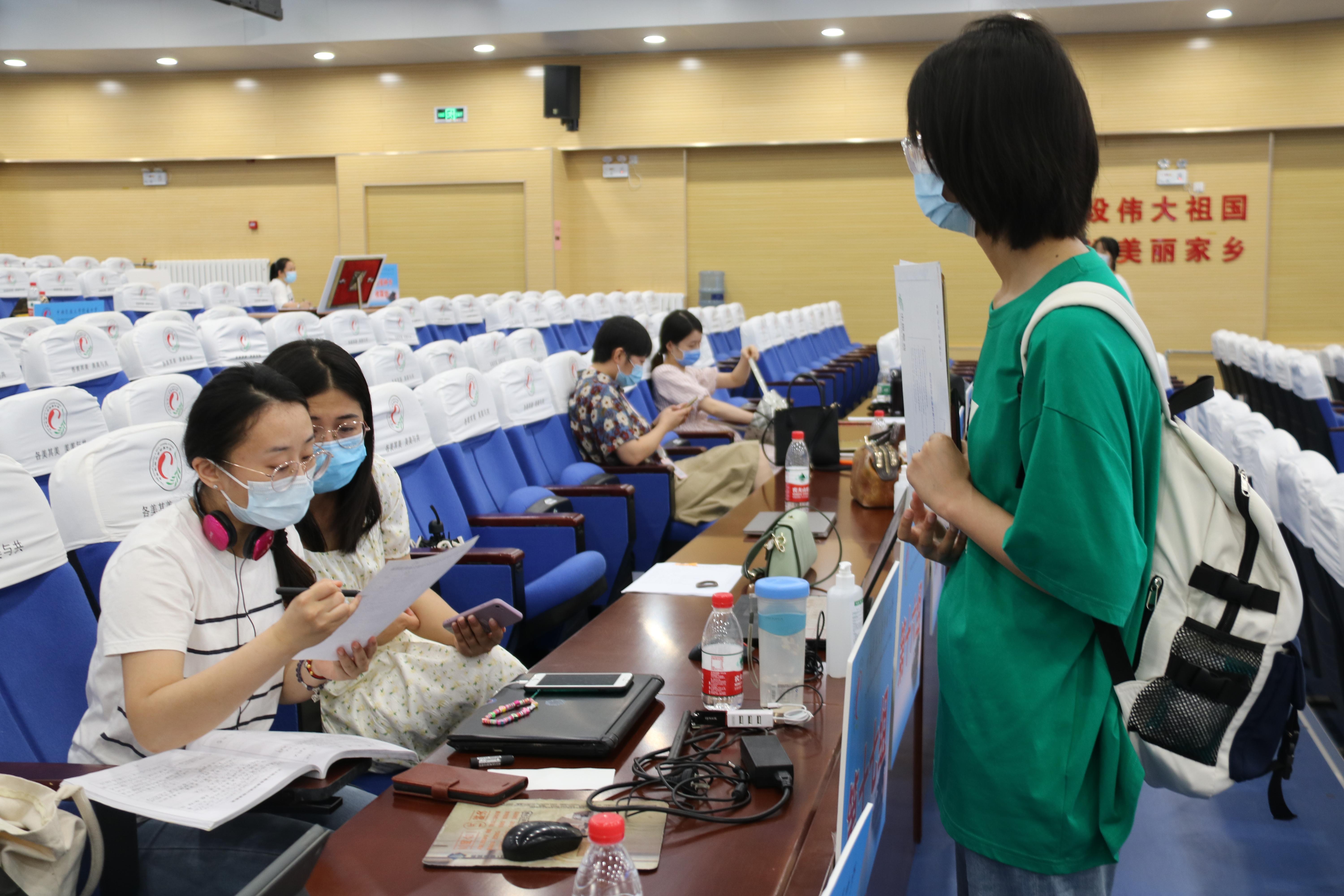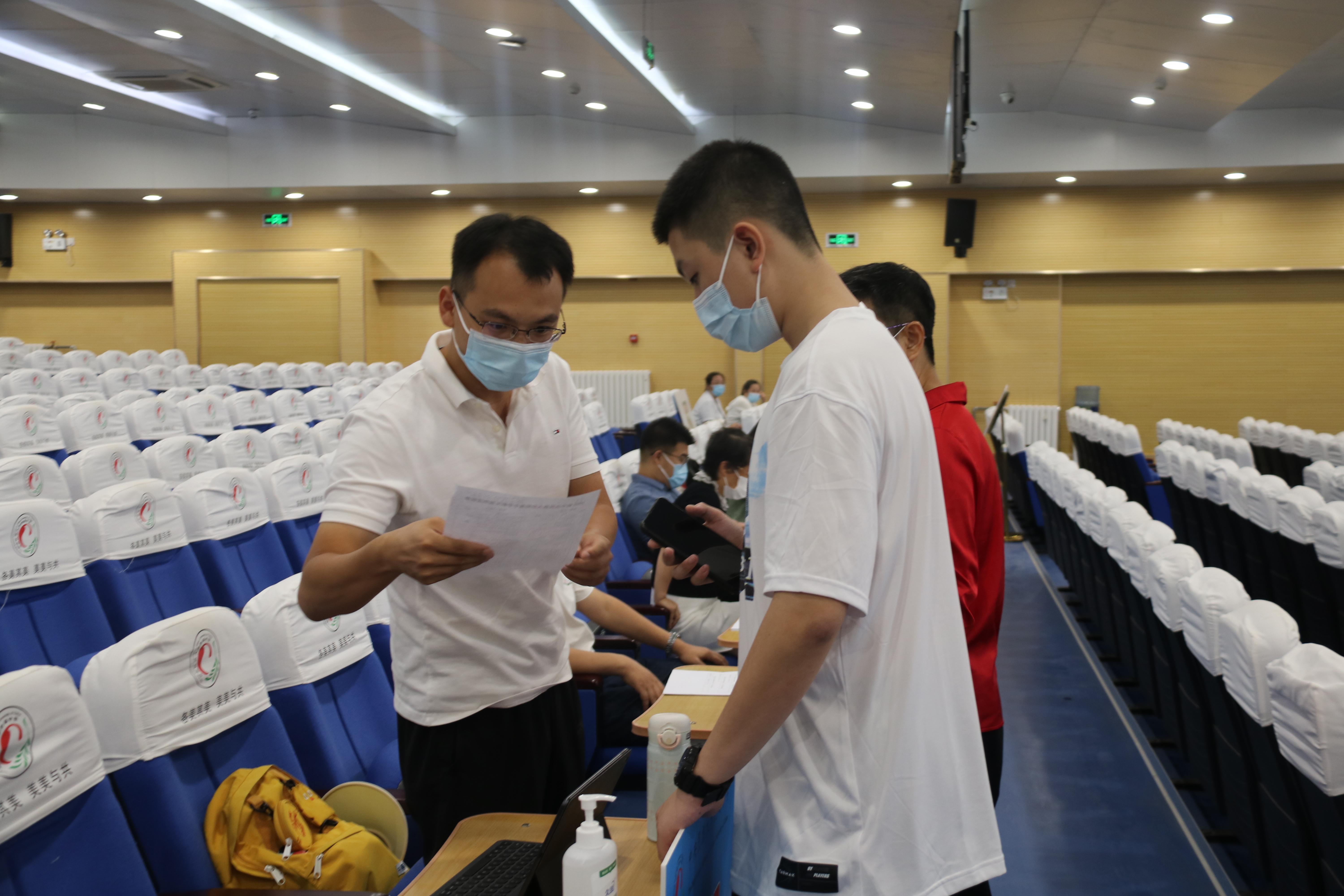 各岗位工作人员一早全部到岗,认真有序地组织新生进行报到,确保了迎新工作安全、有序、顺利开展。老师们严格按照疫情防控要求,引导学生保持安全间隔距离、有序排队,扫描“健康码”、为学生测量体温,给行李进行消毒杀毒,完成各项防疫措施后,通过专用通道进入校内。