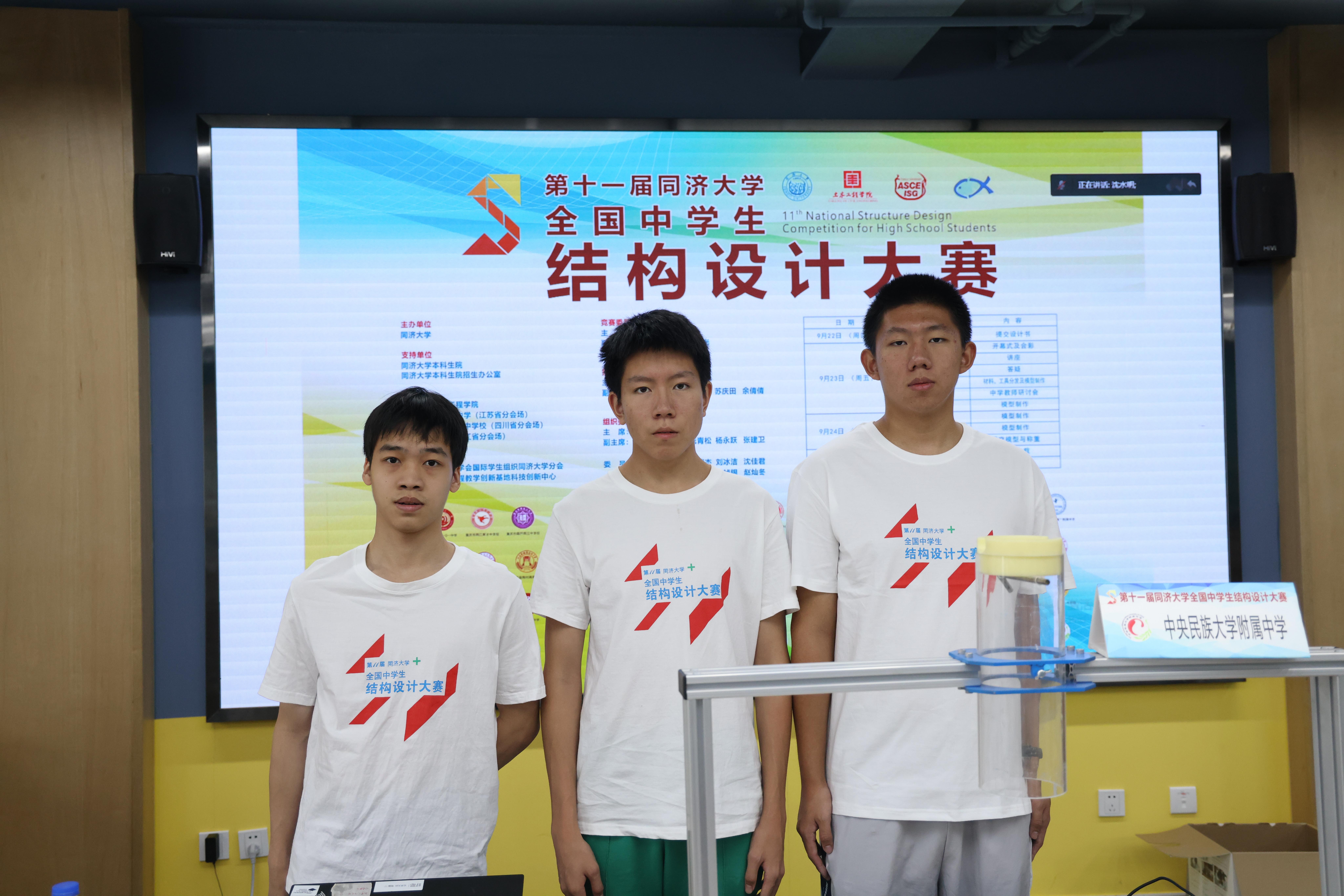 感谢同济大学在疫情背景下,突破重重困难坚持举办了中学生结赛。比赛既是对科学理论知识的检验,也是锻炼实践综合能力的契机,同时健理老师的专业背景和丰富的比赛经验是我们坚实的支撑,从结构模型的设计到材料处理的细节,三位同学一边学习一边收获一边成长。我看到了民附科创力量的传承,希望未来有更多同学能够积极参与到各项比赛中,再创辉煌!