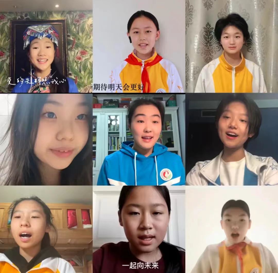 特殊时期的云端比赛激发了学生不一样的创作灵感,吸引了学生、老师以及学生家人加入到录制中来,经过精心的排练、录制和剪辑,活动涌现出了一批高水平的作品。镜头前一个个挺拔的身影肃穆庄严,饱含深情地表达着新时代青年对党和国家的无限热爱和祝福之情。