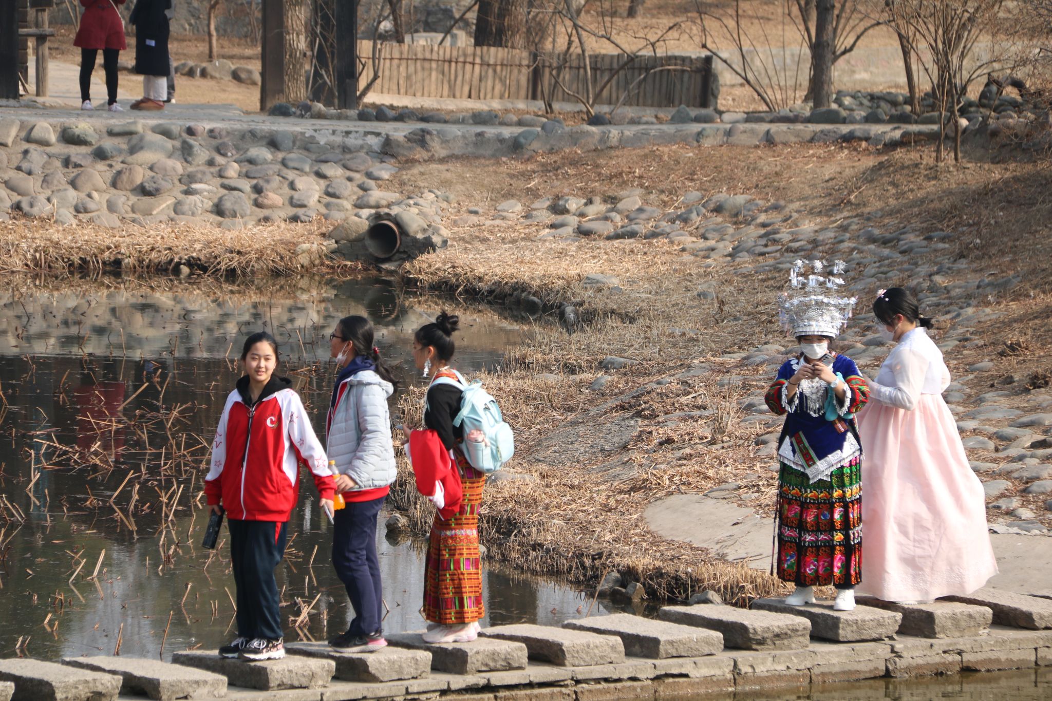 我们踏上中华民族园北园的民族探寻之旅,穿行在各种建筑中,触摸具有民族特点的器物,增强了我们的民族认同感。