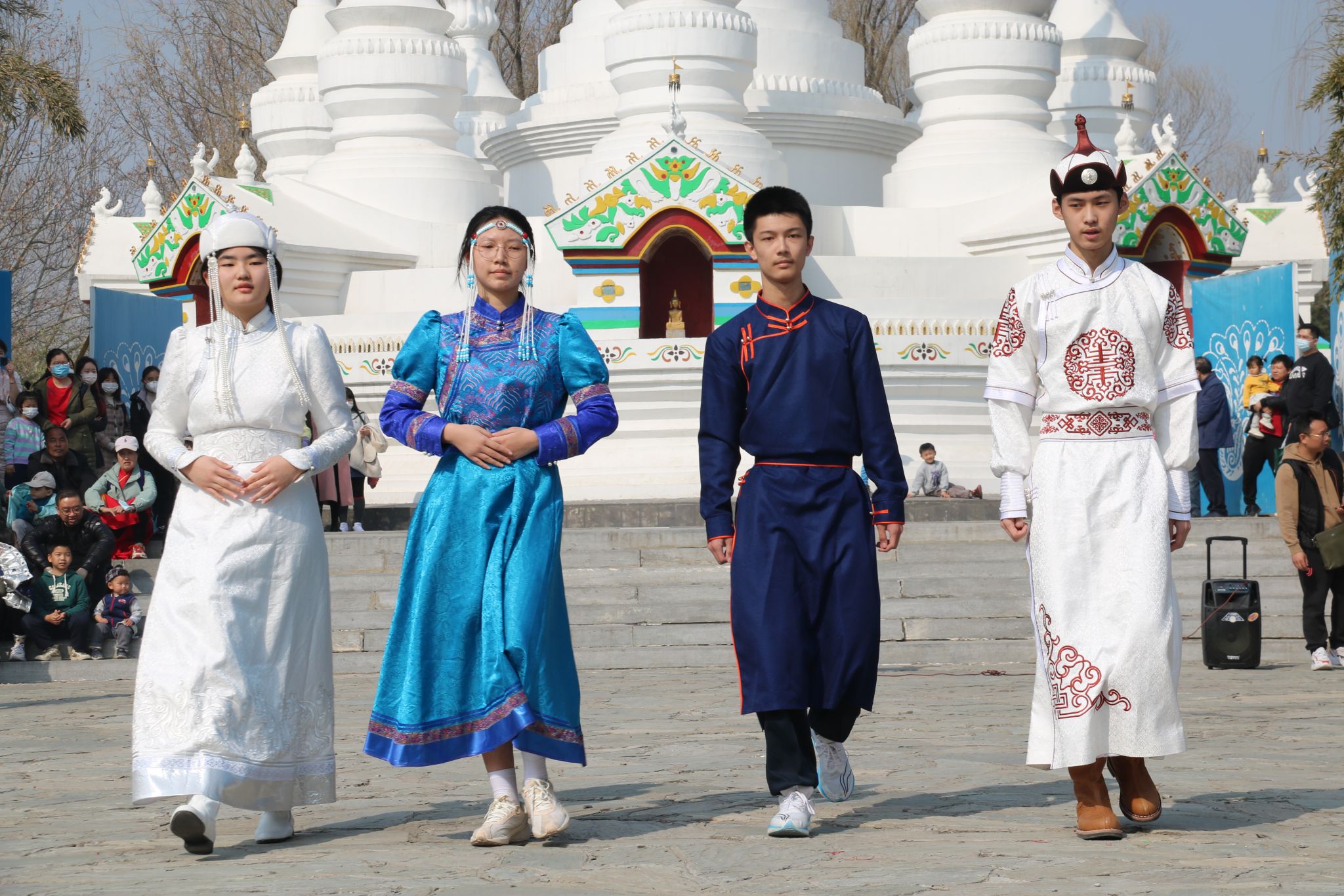 为促进各民族交往交流交融,增进同学们对中华优秀传统文化的了解,各族学子为大家展示了民族特色服饰与基本礼节。