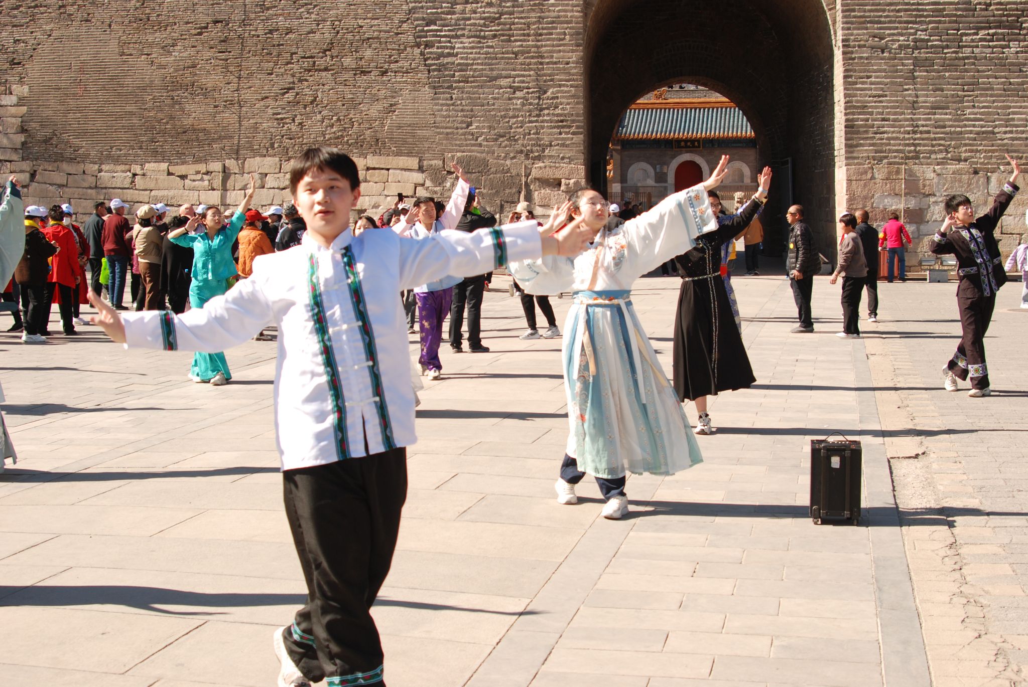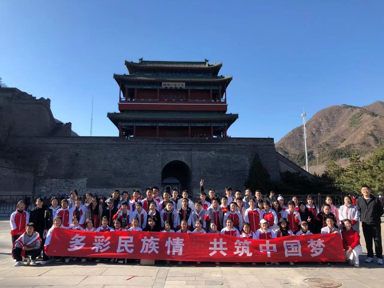居庸关长城脚下,民附学子伴着《爱我中华》的旋律演绎着民族韵律操,展现了“中华民族一家亲,同心共筑中国梦”的美好愿景。