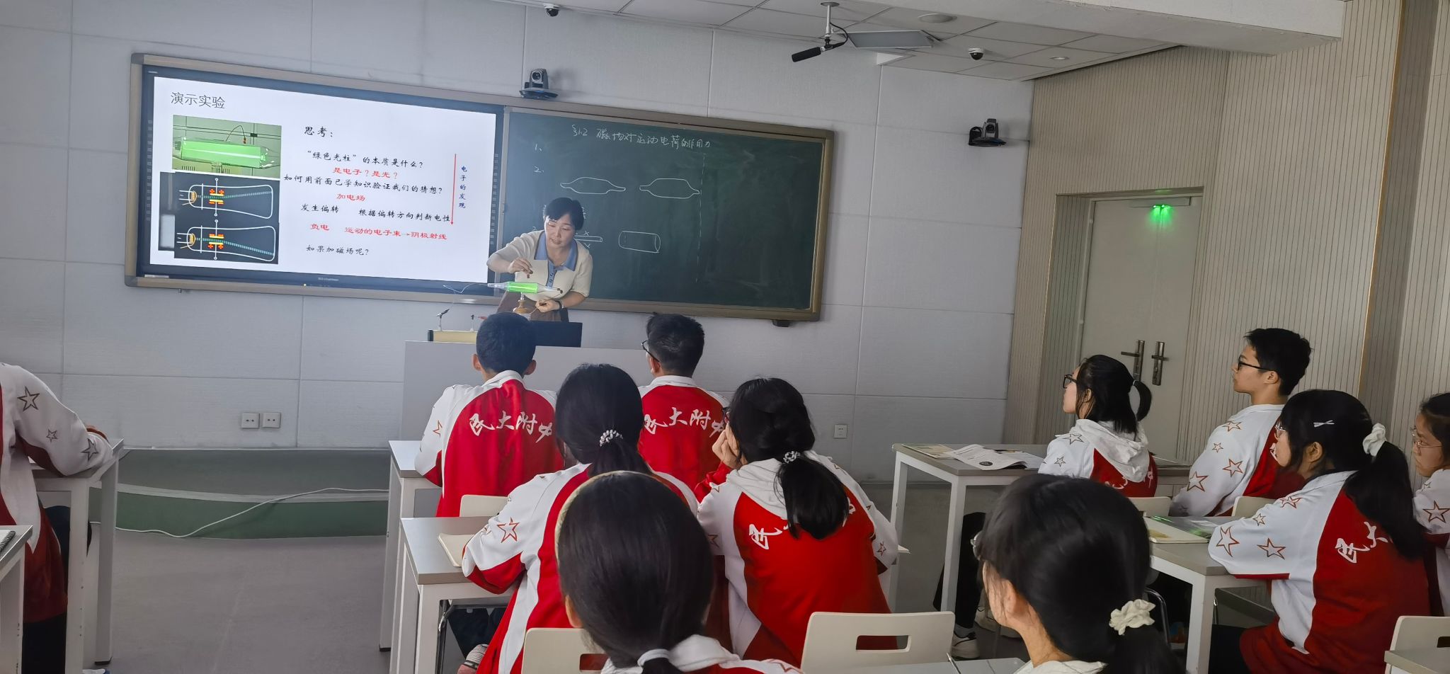 高二颜彩娜老师的《磁场对运动电荷的作用力》课堂更是以视觉效果为亮点,深入浅出地展示了洛伦兹力的原理和应用。她运用精心准备的案例和动画,生动演示了电流和磁场之间的相互作用,令学生们在视觉和听觉上都得到了全方位的感受。