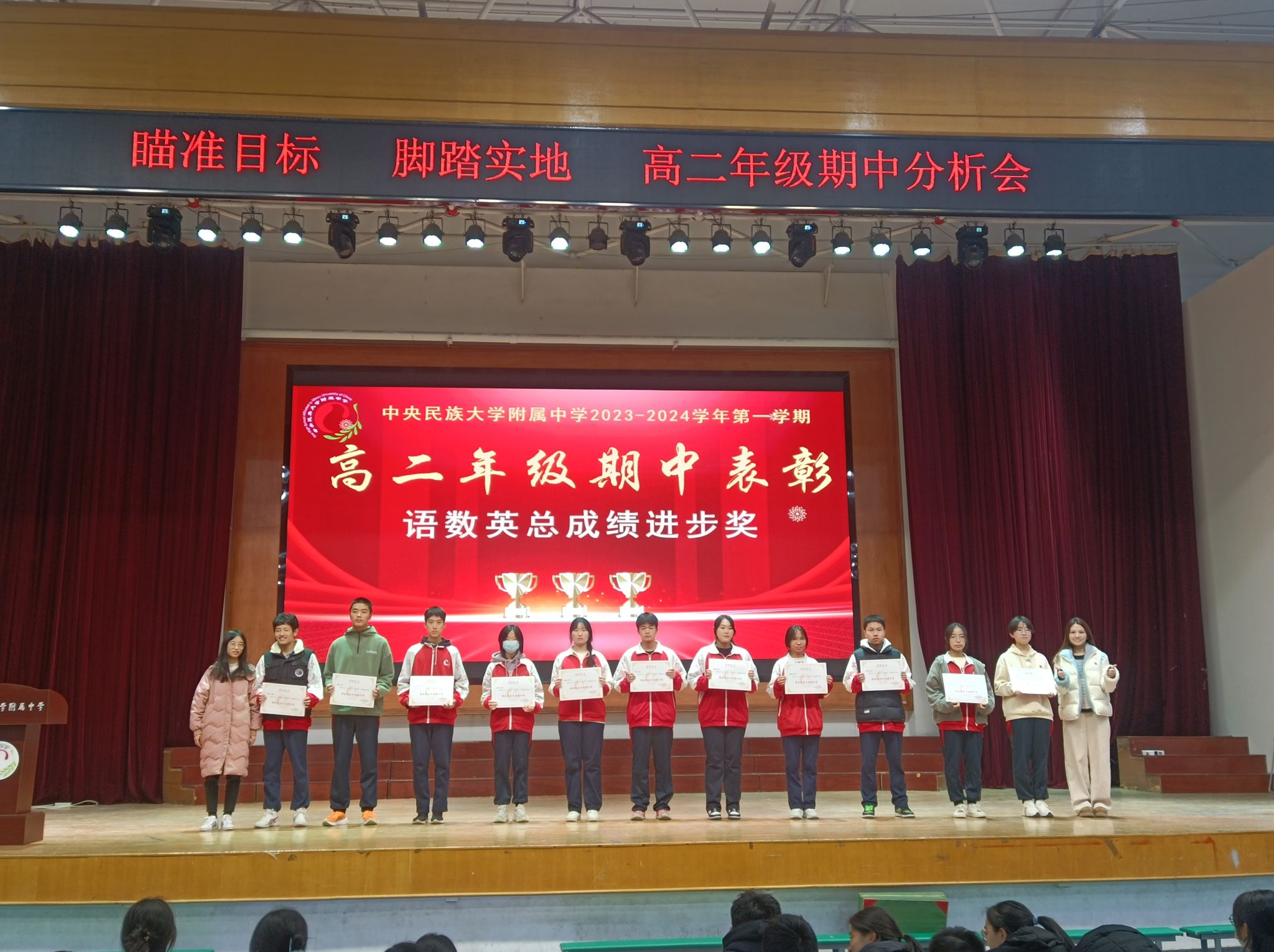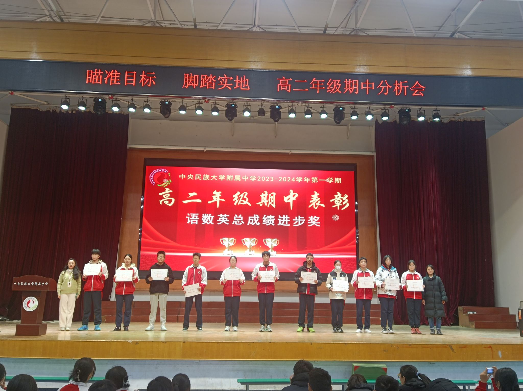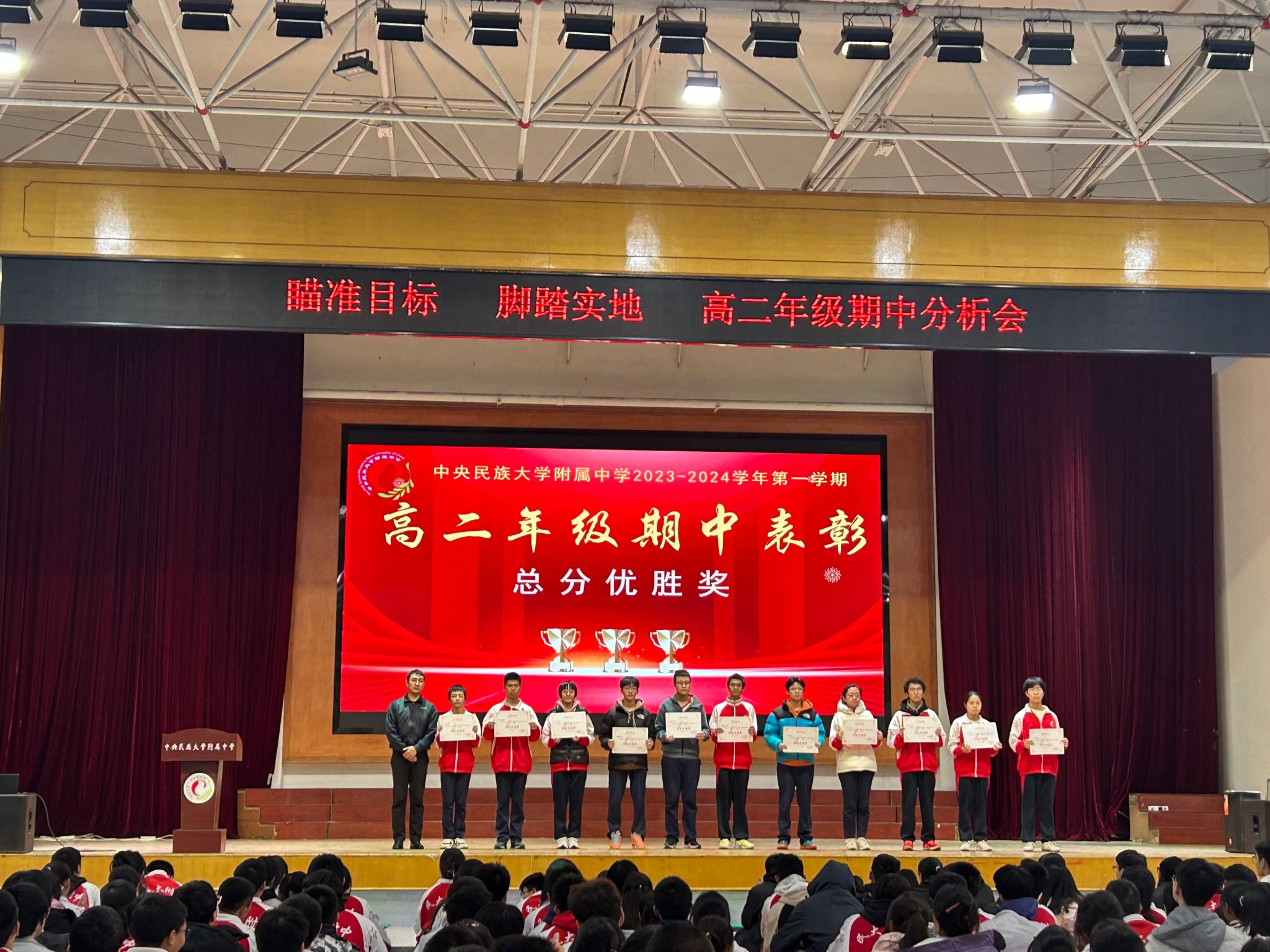 蓝图绘就,正当乘风破浪;重任在肩,更须策马加鞭。此次表彰大会,为同学们燃起了勇往直前的斗志、坚定了追求卓越的信念。相信高二年级所有同学将瞄准目标,脚踏实地,再接再厉,踔厉奋发!