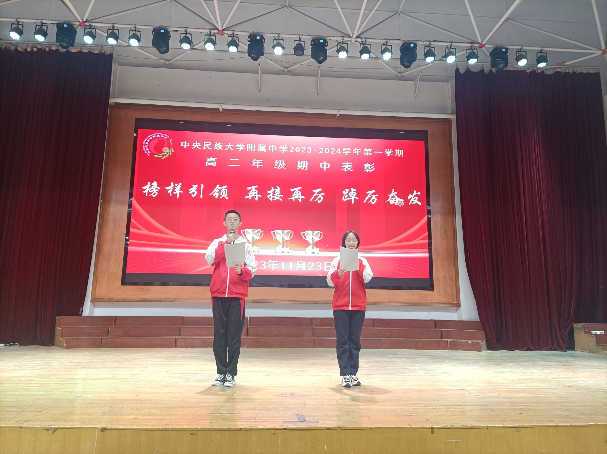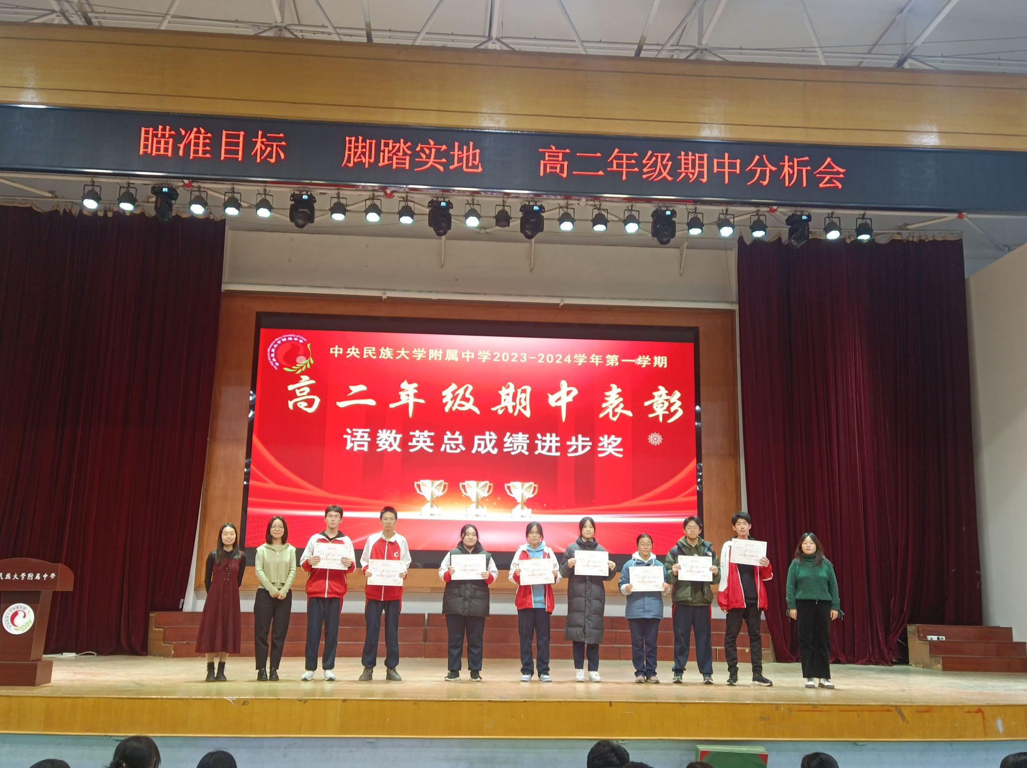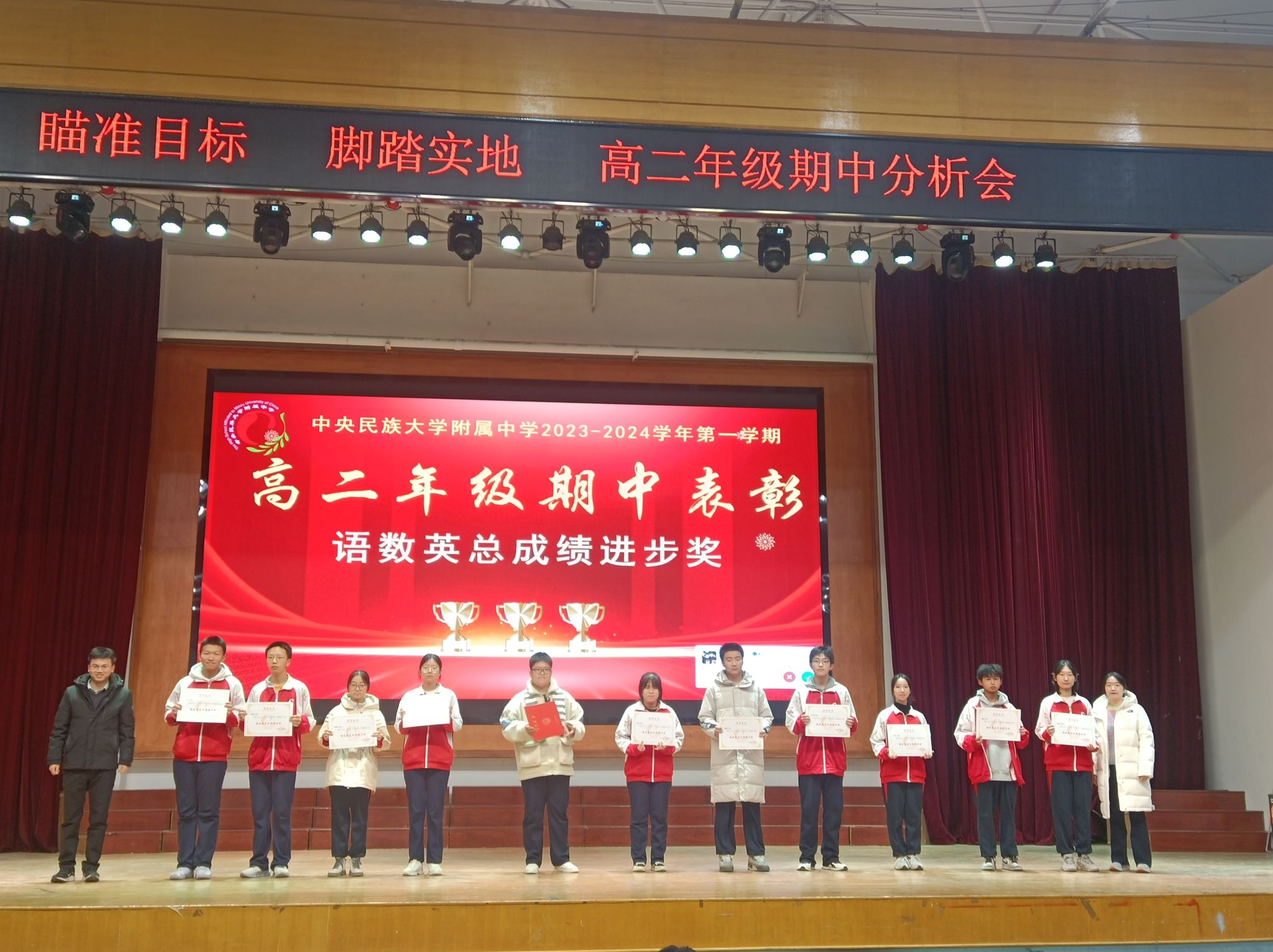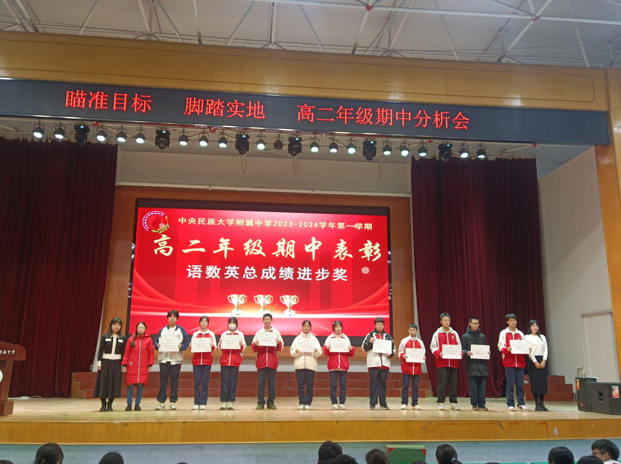 蓝图绘就,正当乘风破浪;重任在肩,更须策马加鞭。此次表彰大会,为同学们燃起了勇往直前的斗志、坚定了追求卓越的信念。相信高二年级所有同学将瞄准目标,脚踏实地,再接再厉,踔厉奋发!