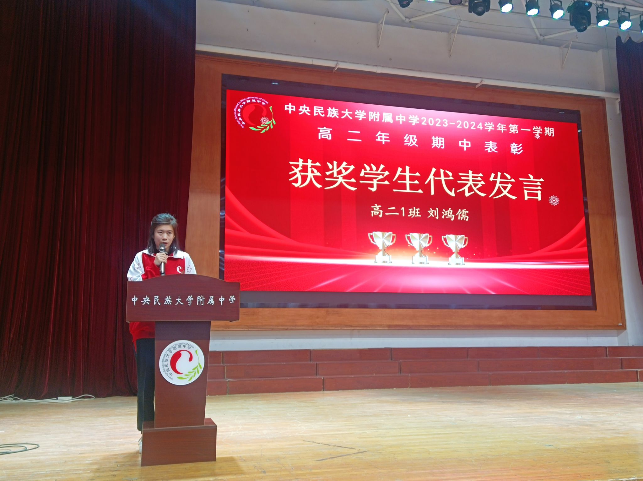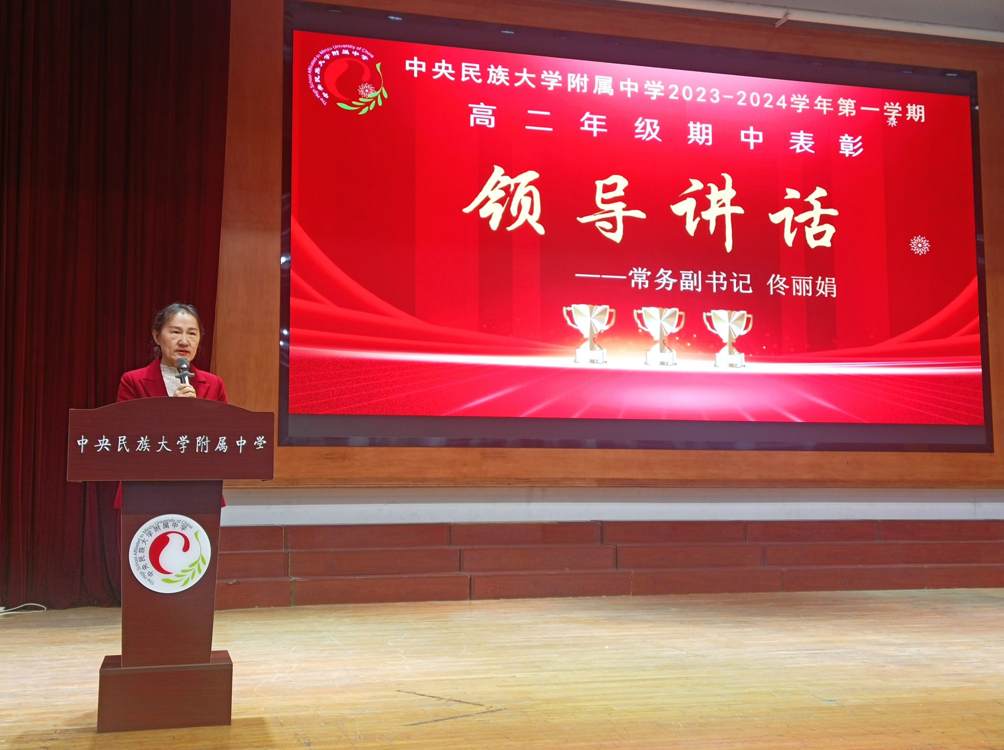 鸿鹄不坠青云志,少年有行必生辉。转眼学期已过半,为表彰优秀,树立榜样,鼓励学生在接下来的学习中继续奋进,11月23日下午,我校高二年级在风雨操场召开了2023-2024学年度第一学期期中表彰大会。党委常务副书记佟丽娟、校长助理冯建新、挂职干部甘肃肃南一中马世国副校长、保卫科科长刘长喜、德育科副科长赵彬、团委书记杨夺、高二年级正副主任、班主任及高二全体学生参会。会议由高二10班朱滢、16班张尧同学主持。