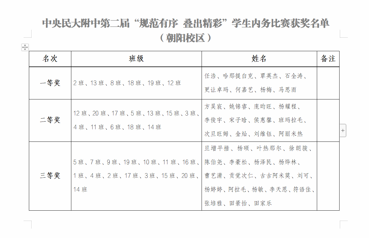 俗话说:“出门看队伍,进门看内务”。此次比赛,不仅丰富了大家的课余生活,愉悦了身心,使同学们的内务整理技能得到了锻炼,更增强了他们独立自主的意志力和行动力。希望同学们能以本次活动为契机,务实开展宿舍劳动教育,将良好的生活作风延续到今后的学习生活中,努力彰显民附学子的青年担当。
