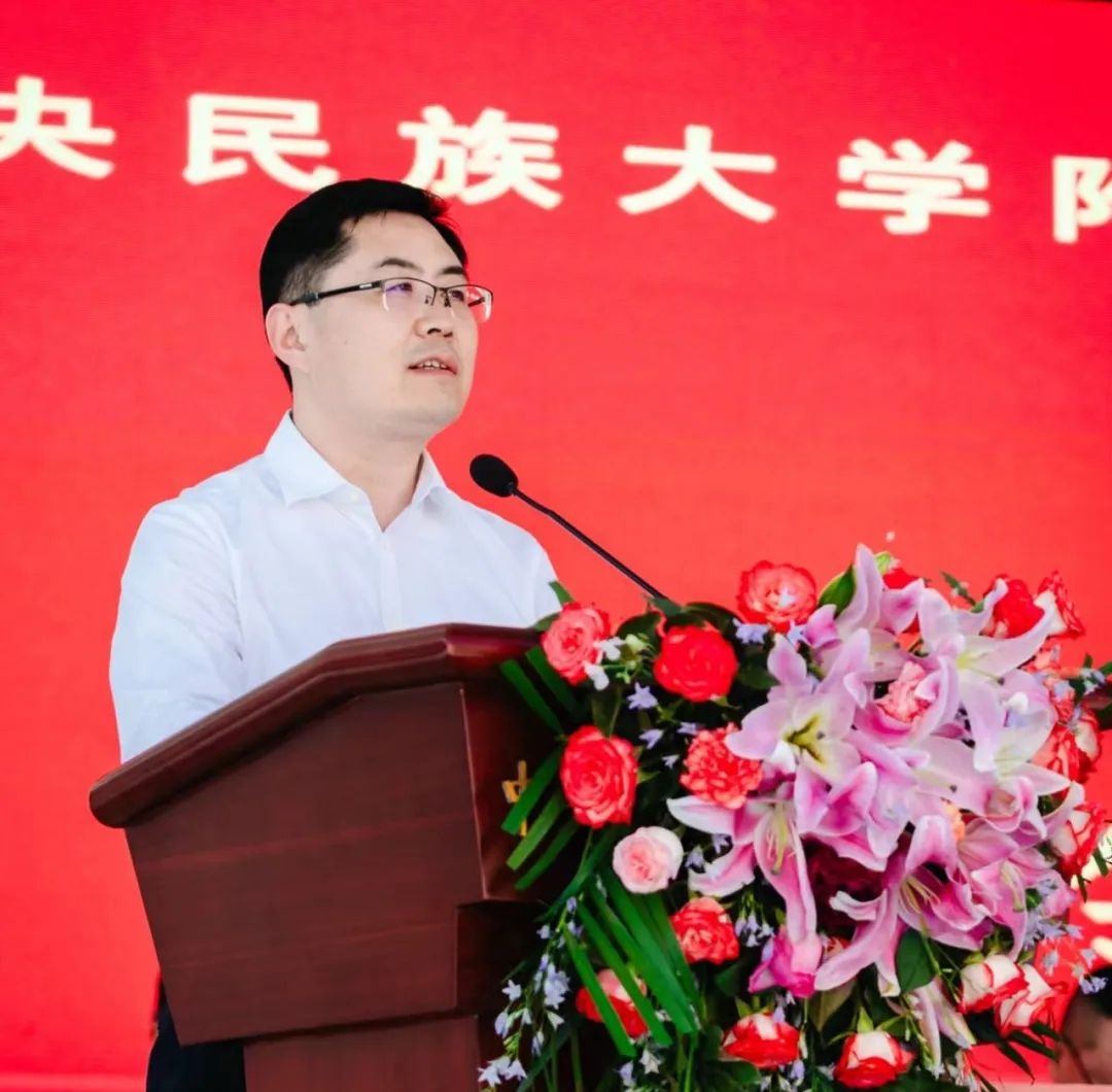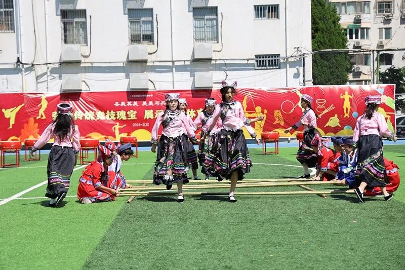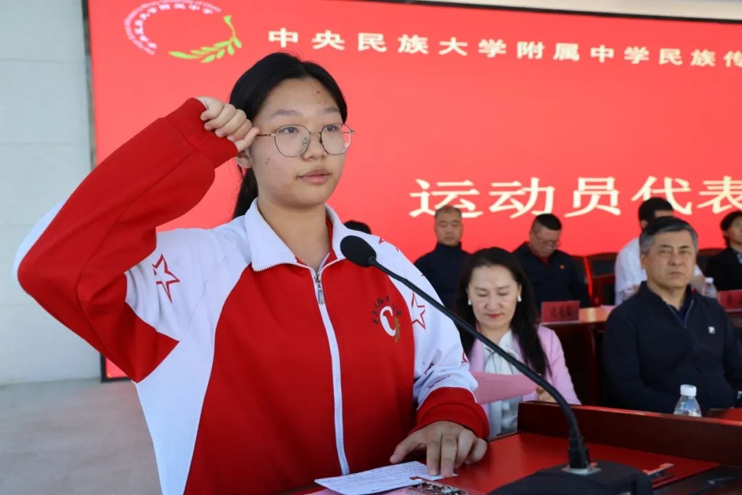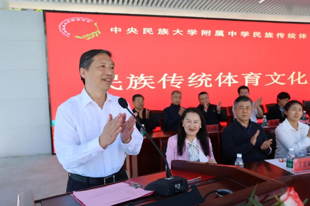 海淀区委常委、统战部部长、副区长徐振涛在讲话中表示,民大附中办学历史悠久,文化底蕴深厚,在即将迎来新中国成立75周年,推进“十四五”规划建设的关键时刻,学校举办民族传统运动会,是贯彻落实习近平总书记殷切嘱托重要形式,是学校民族团结进步教育的生动实践,是传承中华民族优秀传统文化和促进学生“德智体美劳”全面发展的具体行动。民大附中作为海淀区新品牌学校,为海淀区乃至北京市中小学校铸牢中华民族共同体意识教育实践工作提供了经验总结与交流分享搭建平台,为大中小学开展铸牢中华民族共同体意识教育研究和实践提供了指导和借鉴。