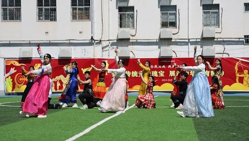 锦绣大地神采飞扬,江山如画诗意酣畅。同学们用民族舞蹈展示泱泱华夏之美,诠释了各民族共同开拓了辽阔的疆域、共同书写了悠久的历史、共同创造了灿烂的文化、共同培育了伟大的精神,展示了我校铸牢中华民族共同体意识教育的成果。