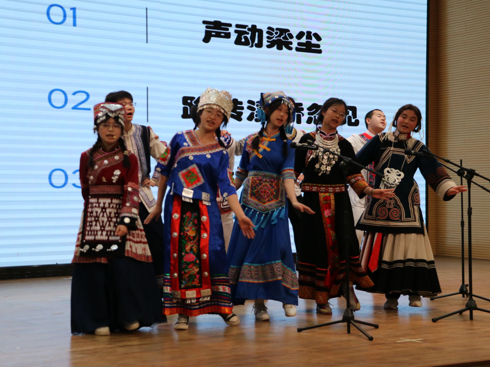 有一个民族吟唱着古老的歌,有一座村寨氤氲着鼓楼的美,高一13班团队激情展示了三江的建筑美和侗族大歌的艺术美。