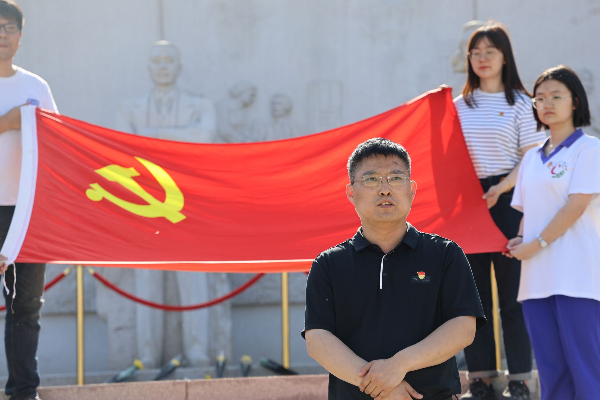 5月14日,在无名英雄纪念广场,参训教师们聚集在一起,缅怀无名英雄,共同重温入党誓词,深刻领悟党的初心和使命。附中党委常务副书记佟丽娟以《上好党规党纪第一课 扣好人生第一粒扣子》为题现场给大家上了一堂生动鲜活的微党课。现场课上大家积极发言,充分表达了对无名英雄的敬意和立足工作岗位,为教育强国建设努力奋斗的决心。