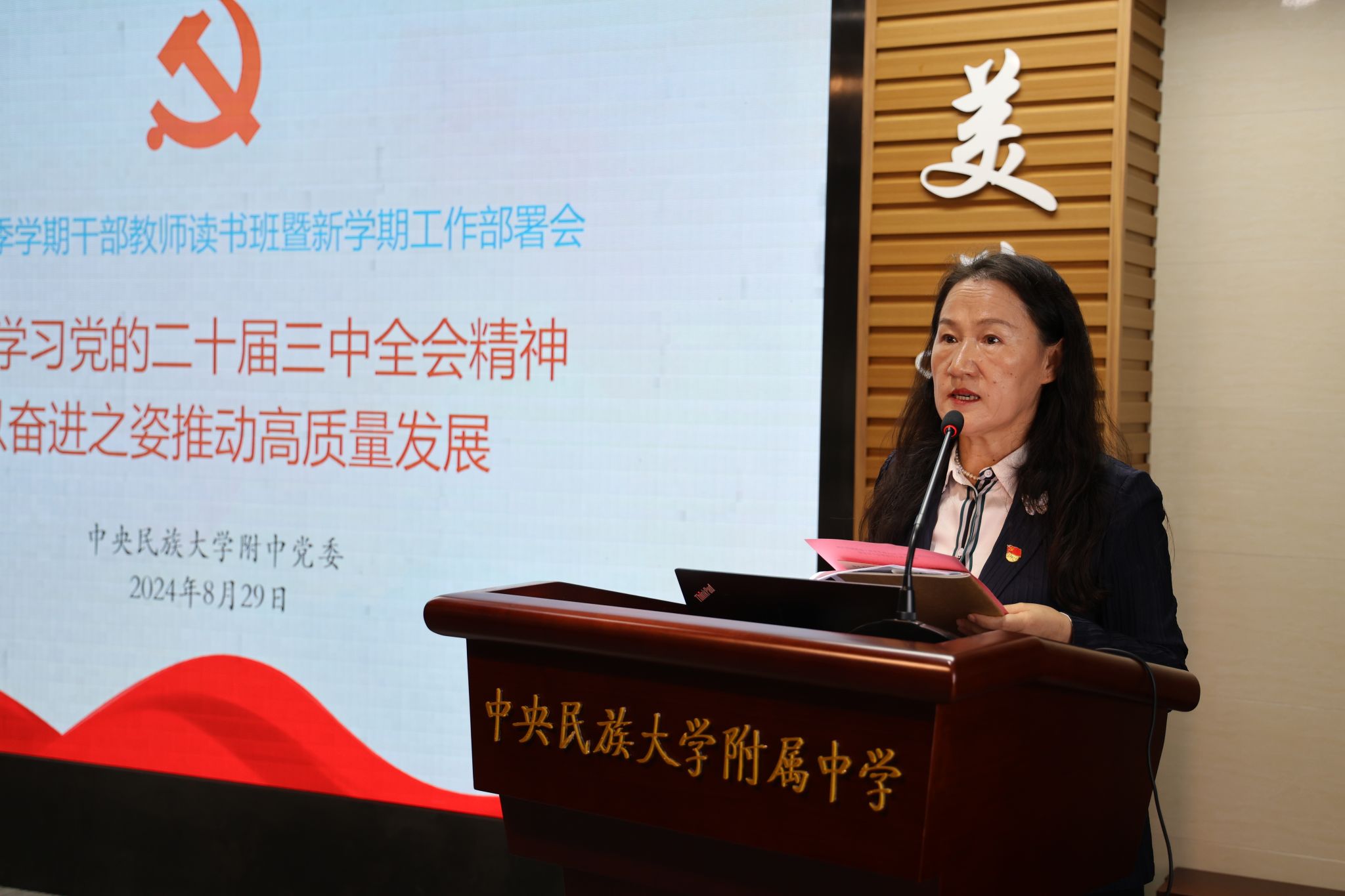 本次干部教师读书班暨新学期工作部署会以“深入学习党的二十届三中全会精神 以奋进之姿推动高质量发展”为主题,结合学校各项工作实际,通过专题报告、工作汇报等方式,加强思想引领、智慧启迪、方向指引、方法指导,全体干部凝聚了共识,明确了学校新学期重点工作内容,为开学后各项工作顺利开展奠定了坚实的基础。