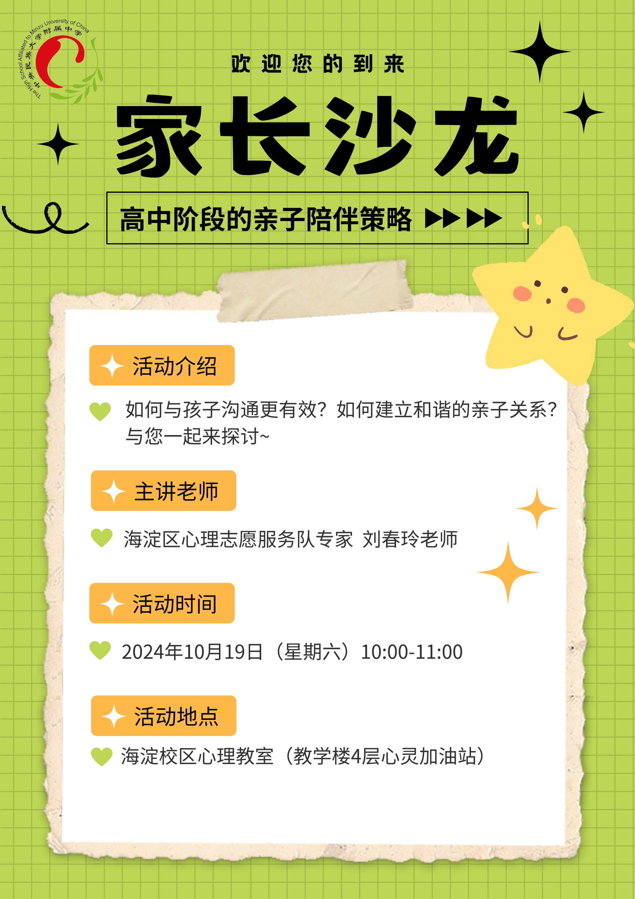 进入高中阶段,孩子面临新环境新挑战,父母也同样面临着新课题新转变,这个阶段的亲子关系质量对孩子的健康成长与未来发展至关重要。为了深度强化家校合作,携手促进学生的健康成长,近日,我校面向高一年级家长精心筹办了一场以“高中阶段的亲子陪伴策略”为核心议题的家长沙龙活动。此次活动旨在引领家长们掌握更有效的沟通技巧,与孩子共同构建基于理解与尊重的和谐亲子关系。