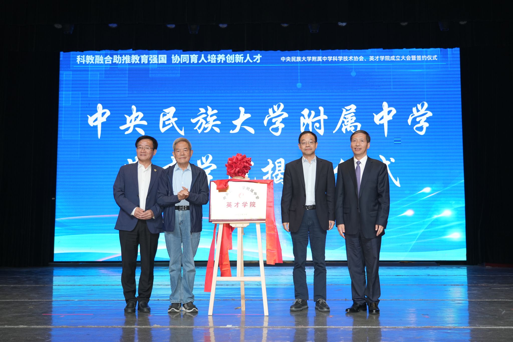 2023年,中央民大附中英才学院成立大会暨中科学院、民大附中合作签约仪式顺利举行。