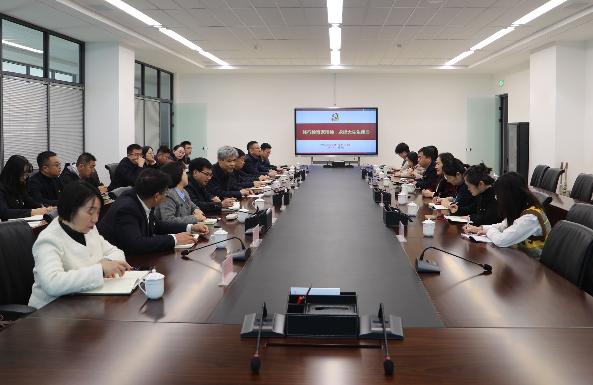 11月5日上午,集团总校佟书记面向呼和浩特分校全体校领导班子成员、各部门负责人和党支部委员作了“弘扬教育家精神,永担‘大先生’使命”的主题党课。佟书记全面阐述了“什么是教育家精神”,指出各级党组织要把弘扬教育家精神,永担“大先生”使命作为开展教师与教师教育工作、培养党和人民满意好老师的必修课,并根据工作实际分享了附中坚持以文化人、启智润心、乐教爱生、建设精神家园以及甘于奉献的工作案例与感悟。最后希望呼和浩特分校能继续发扬教育家精神,传承民大附中独特品质,讲好红色故事,赓续红色血脉,铸牢中华民族共同体意识,向“大先生”的目标迈进。