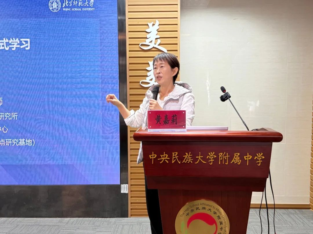 在专家讲座环节,黄嘉莉教授以《我怎么看一个高质量项目式学习》为题开展了专题讲座。黄教授的讲座富于智慧的同时也充满了启发性和前瞻性。她充分肯定了民大附中项目式学习教师团队的学习热情与教学潜力,通过一个个问题比较,引导老师们不断思考,又针对驱动问题、目的与成果、学科本身、学生与教师、课程评价等作了进一步的思想引领,殷切地鼓励大家向高质量项目式学习继续迈进。