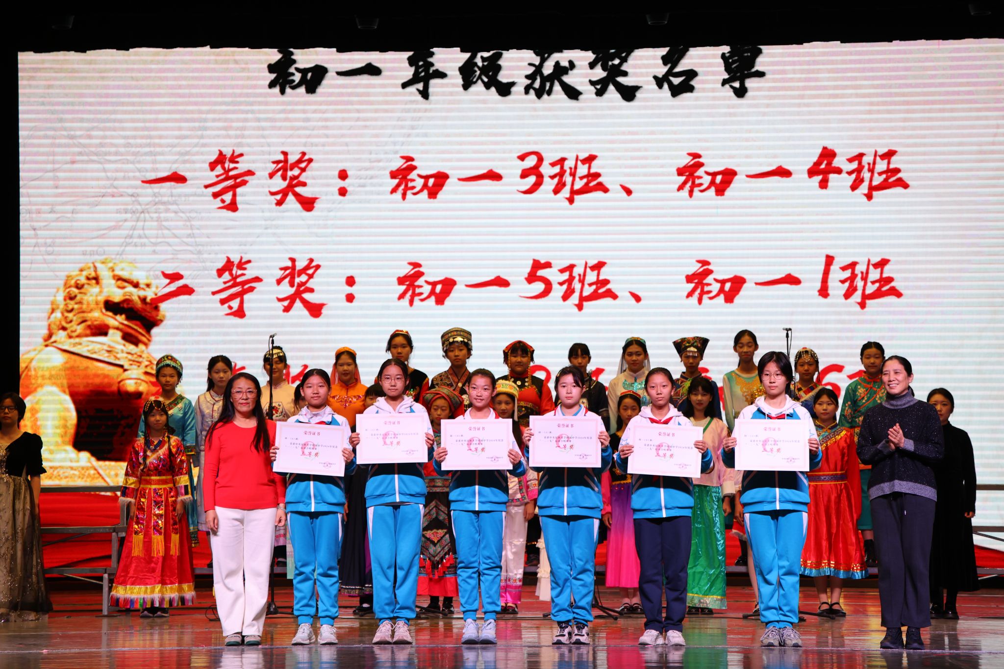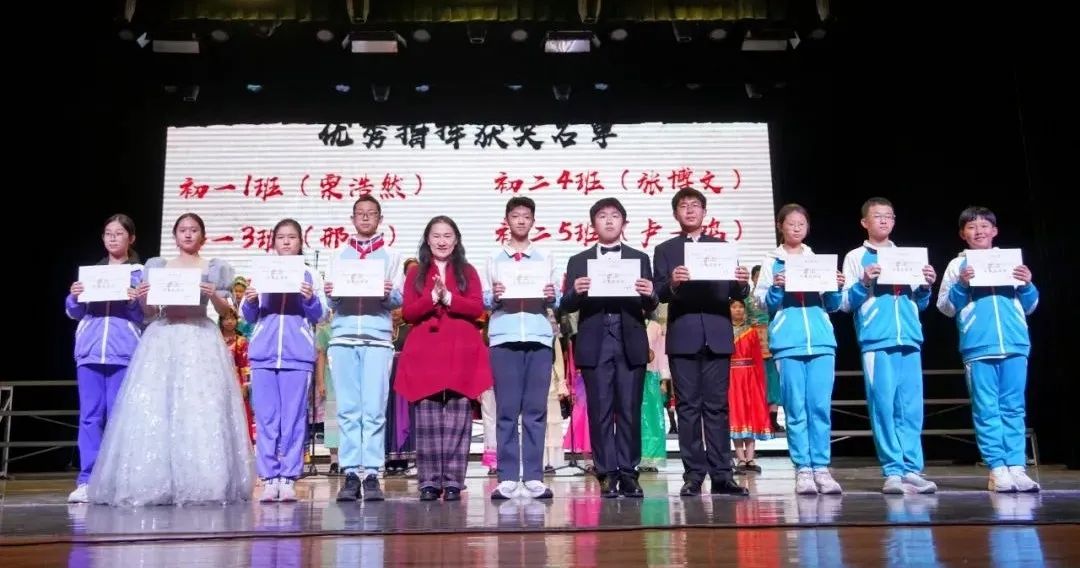 在合唱之后,展演活动迎来了最为璀璨的时刻——颁奖典礼。随着主持人洪亮的声音宣布获奖名单,获奖班级和优秀指挥代表们满怀喜悦地走上舞台,接受这份来之不易的荣誉。他们的脸上洋溢着自豪与喜悦,那是对过去辛勤付出的最好回报,也是对未来继续努力的坚定信念。