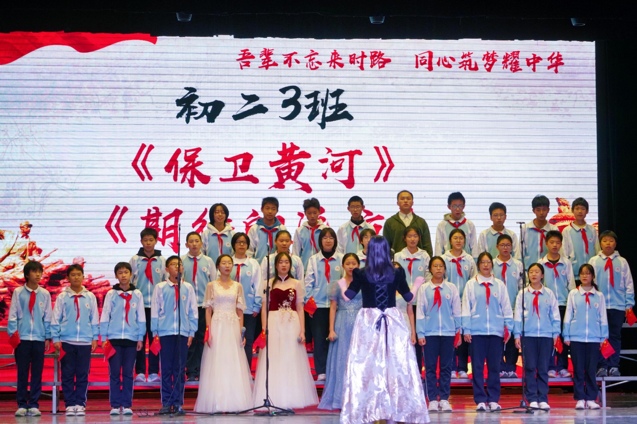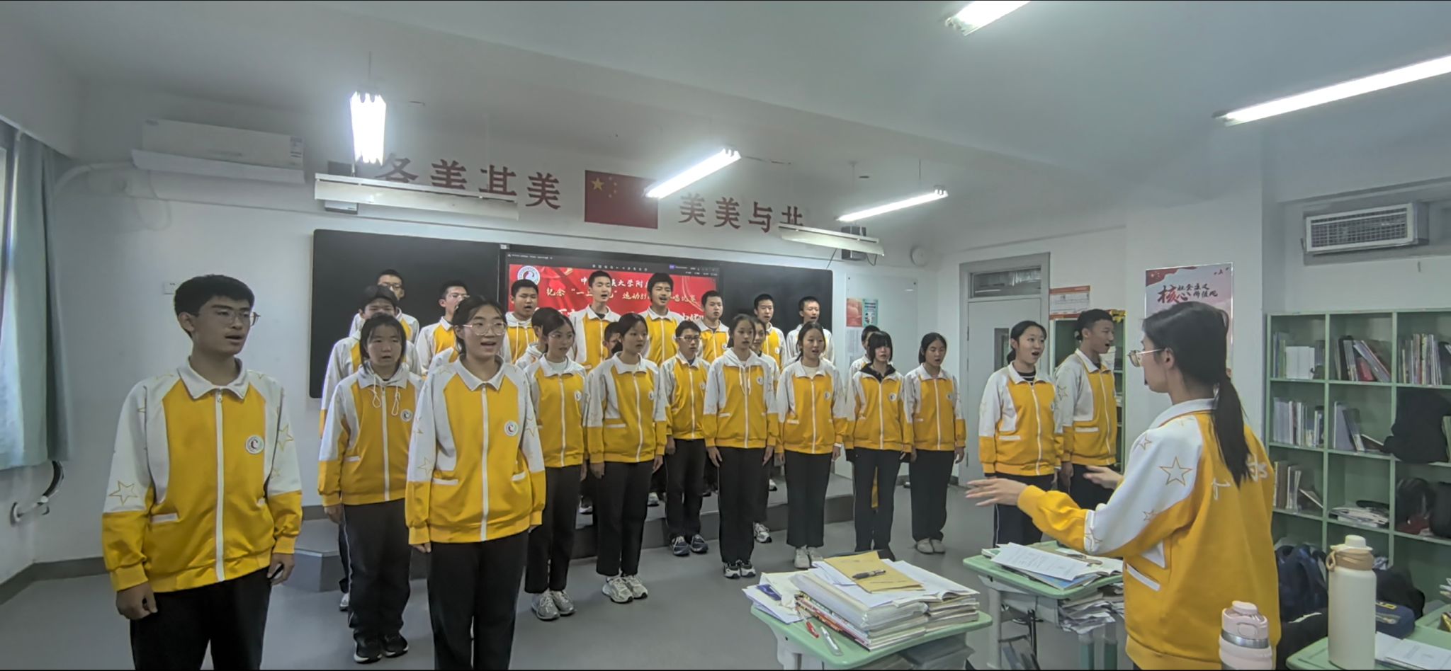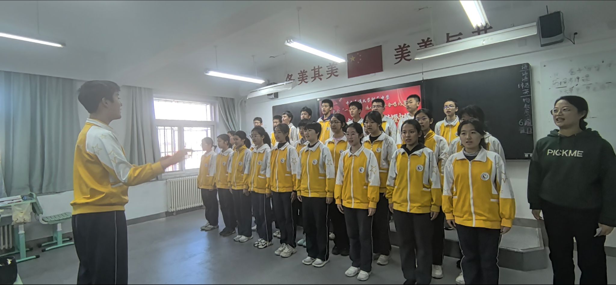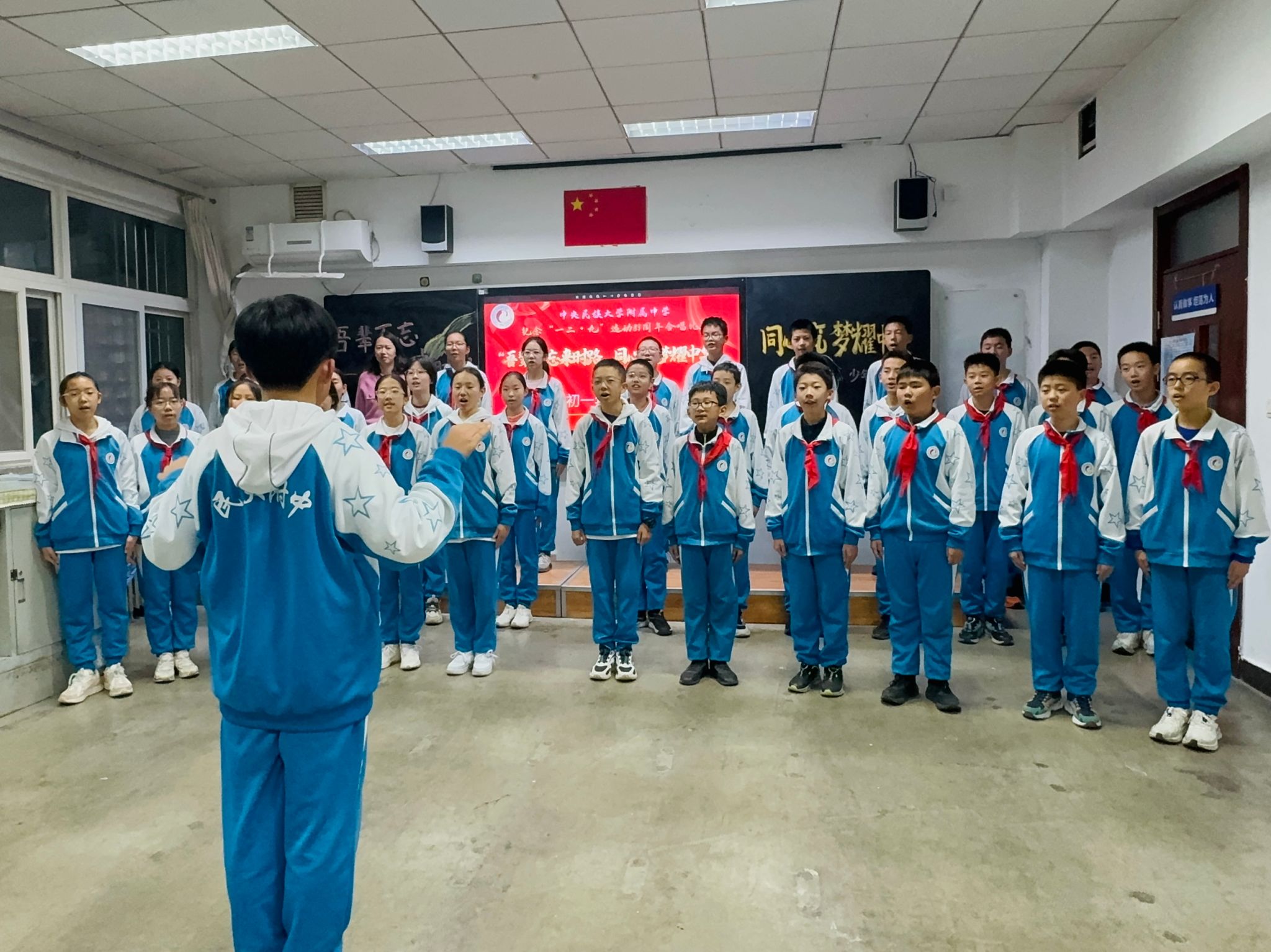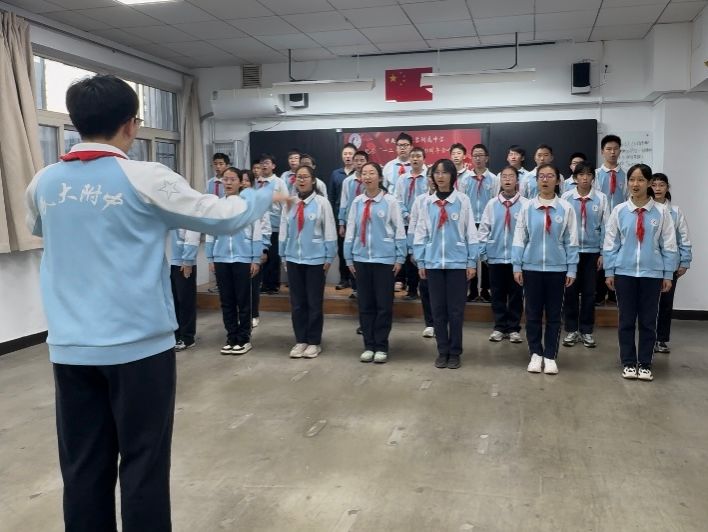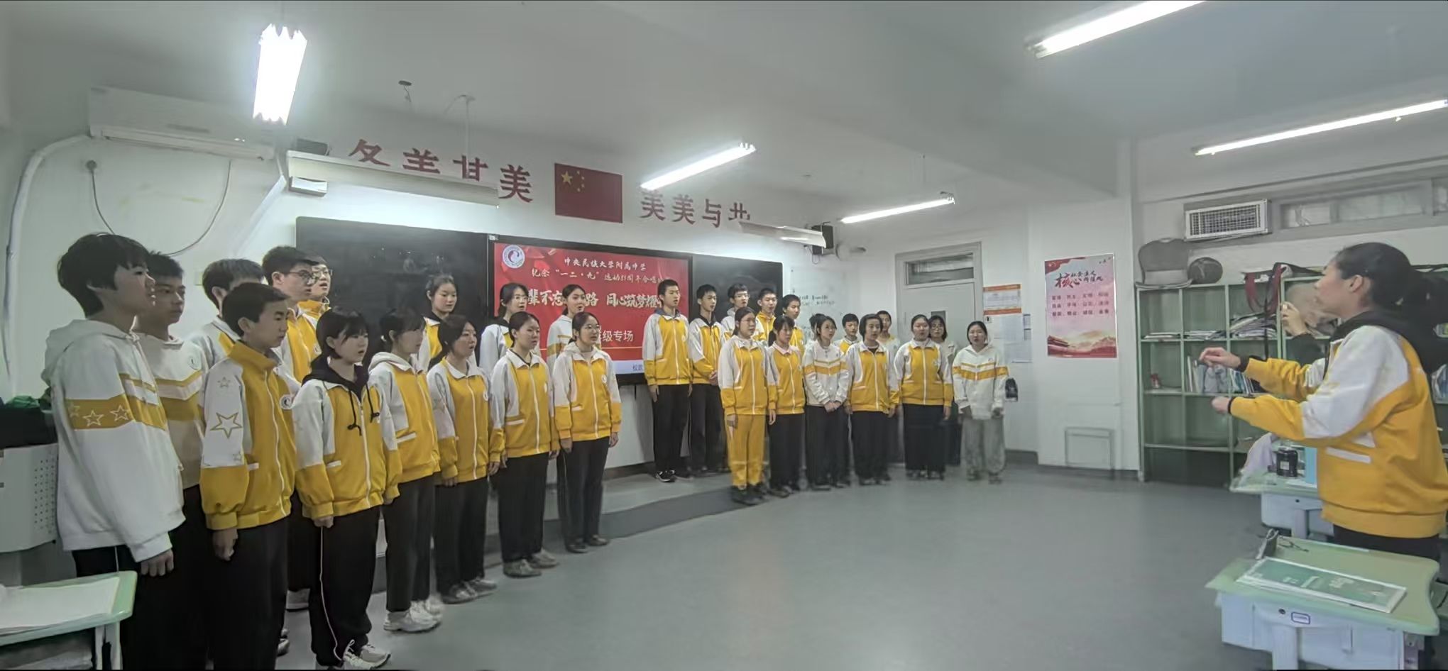 活动历时1个多月,分三阶段进行。前两阶段为年级内评比:第一阶段唱国歌《义勇军进行曲》和校歌《志在远方》,第二阶段唱《保卫黄河》及自选曲目。在前两阶段的评比中,各班均展现出了饱满的精神状态和极高的参与热情。民附的学子们以铿锵有力的声音和满腔的热血,深情缅怀那些投身爱国主义运动的杰出青年;他们目光闪烁,心怀激昂,不仅回望了历史的长河,更展望了未来的辉煌。