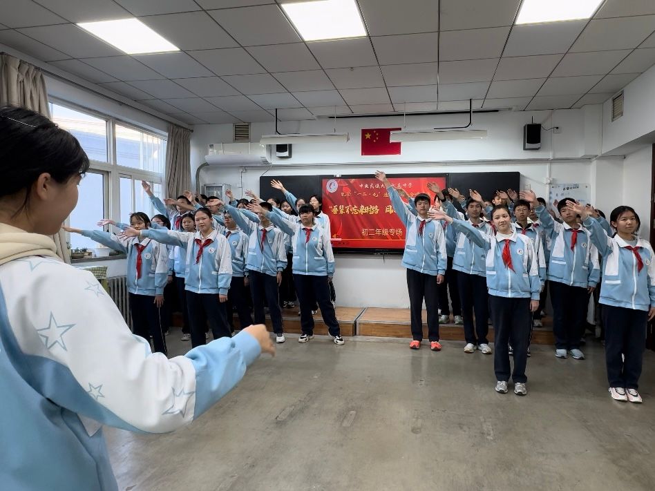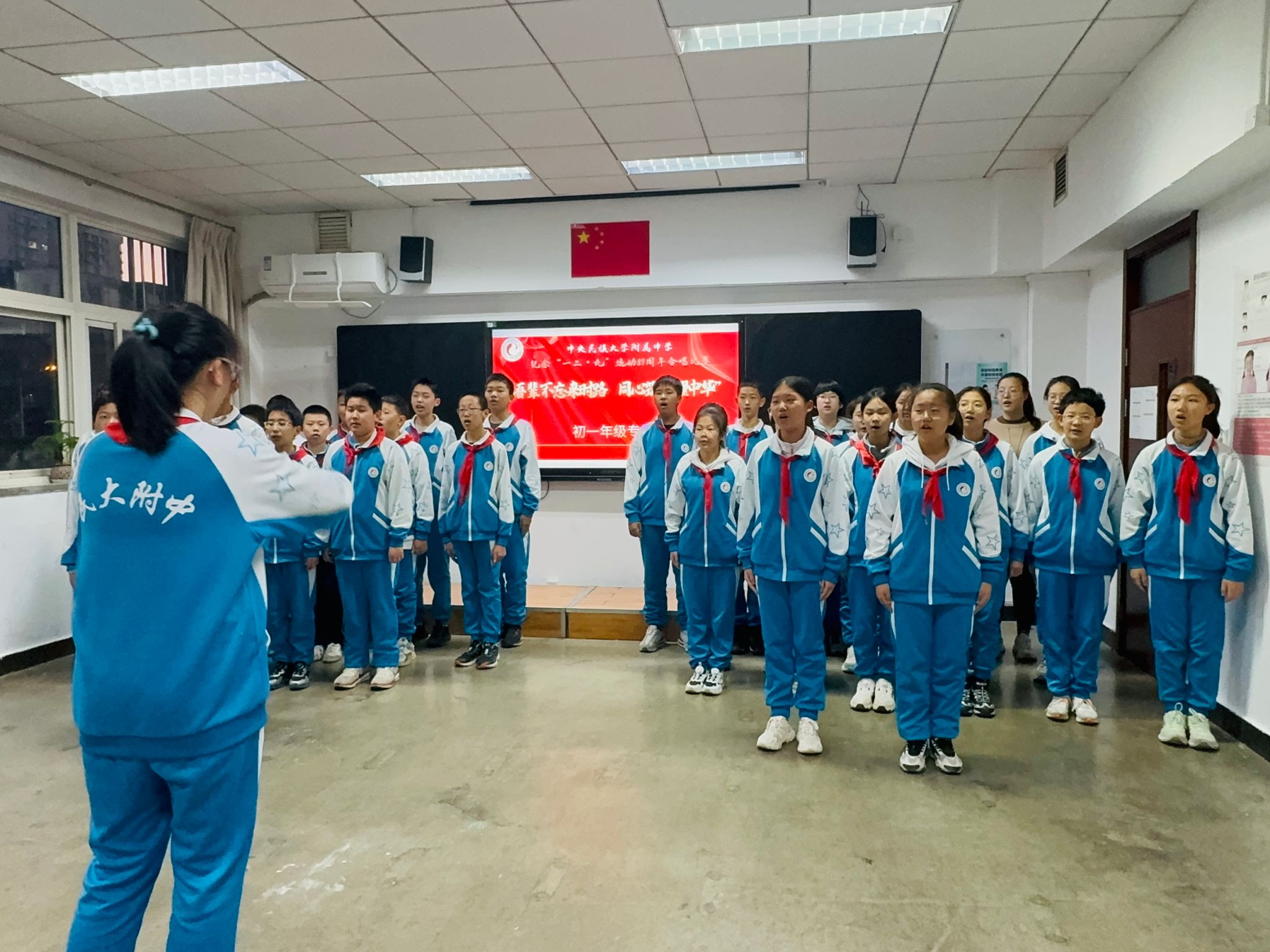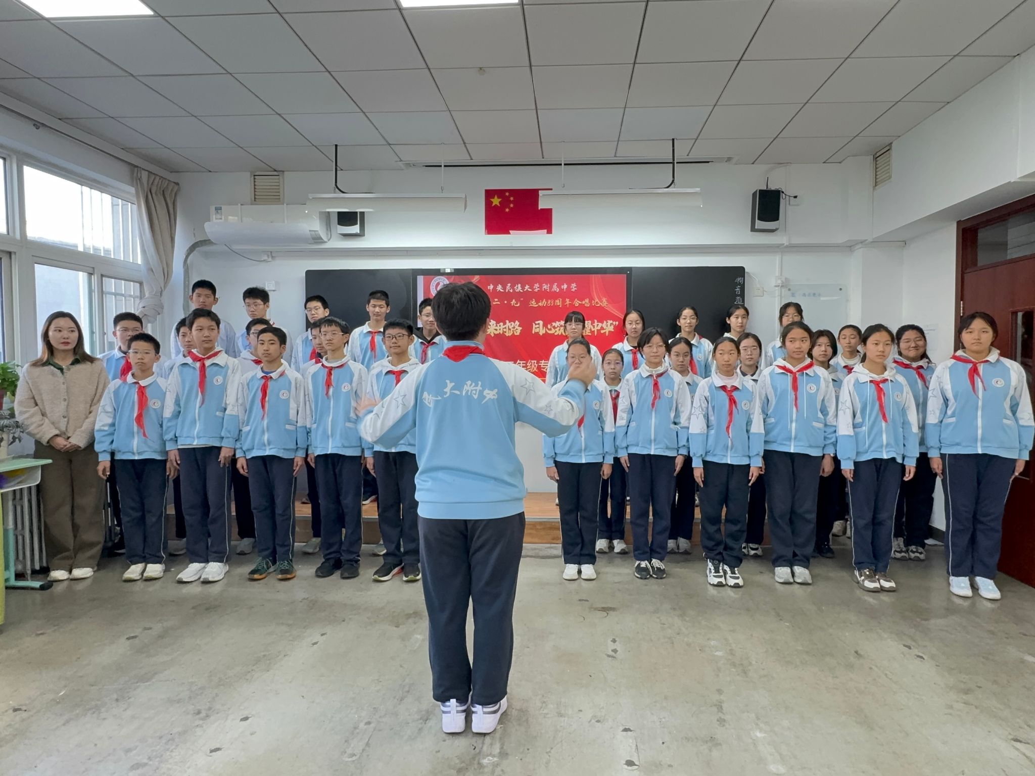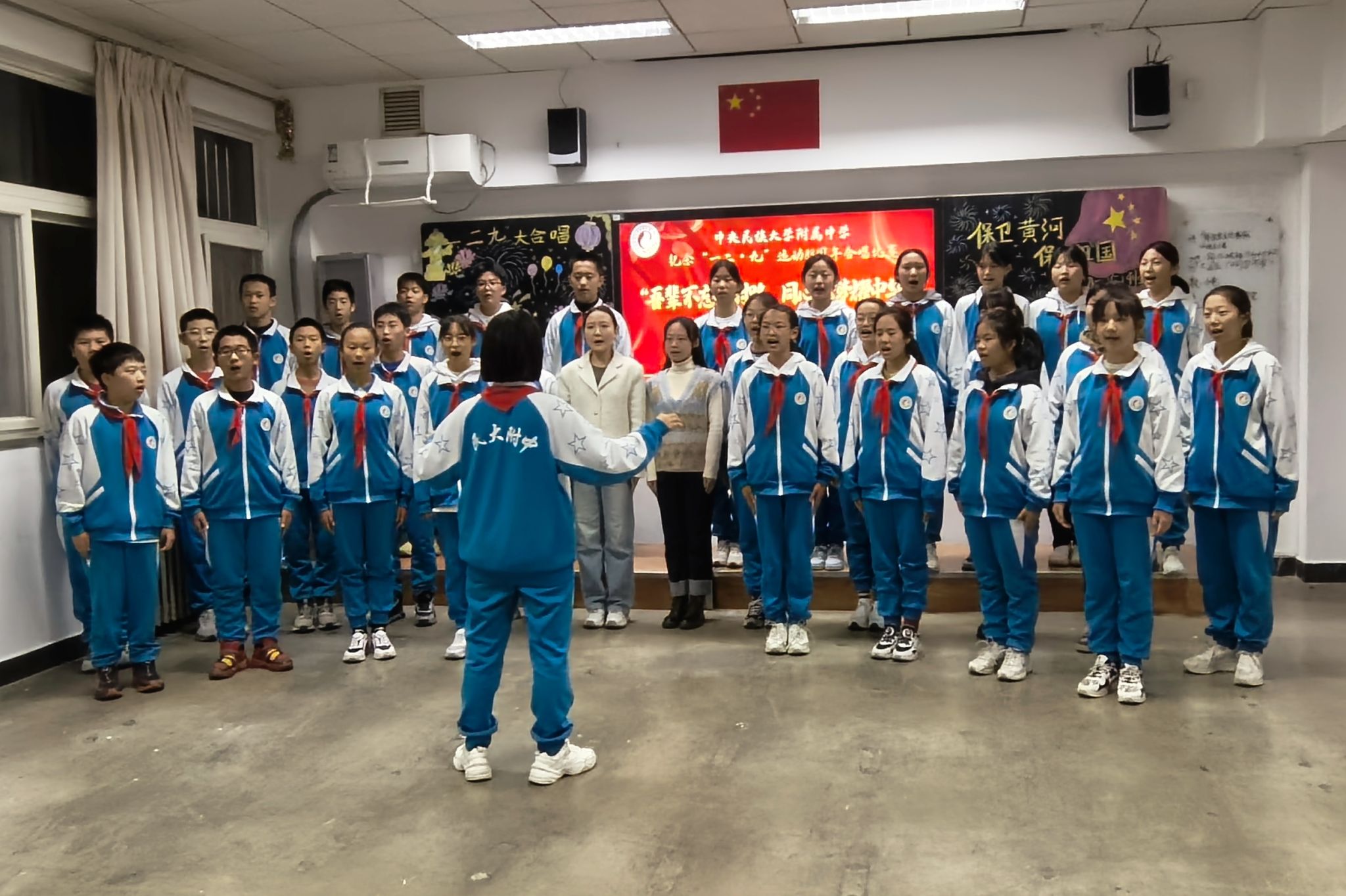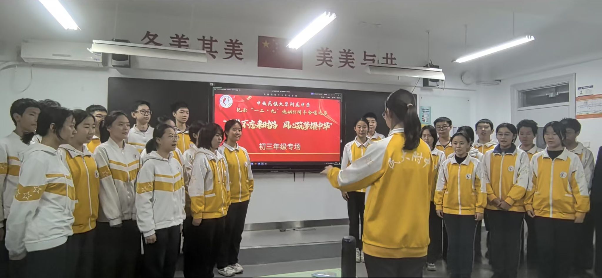 活动历时1个多月,分三阶段进行。前两阶段为年级内评比:第一阶段唱国歌《义勇军进行曲》和校歌《志在远方》,第二阶段唱《保卫黄河》及自选曲目。在前两阶段的评比中,各班均展现出了饱满的精神状态和极高的参与热情。民附的学子们以铿锵有力的声音和满腔的热血,深情缅怀那些投身爱国主义运动的杰出青年;他们目光闪烁,心怀激昂,不仅回望了历史的长河,更展望了未来的辉煌。