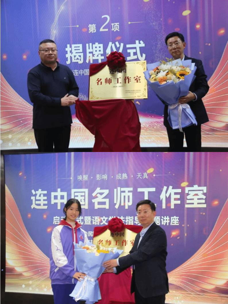 在热烈的掌声中,连中国老师和魏立功副校长共同完成了庄重的揭牌仪式。高一年级学生代表为连老师献上鲜花,以表达对其谆谆教诲的深深敬意。