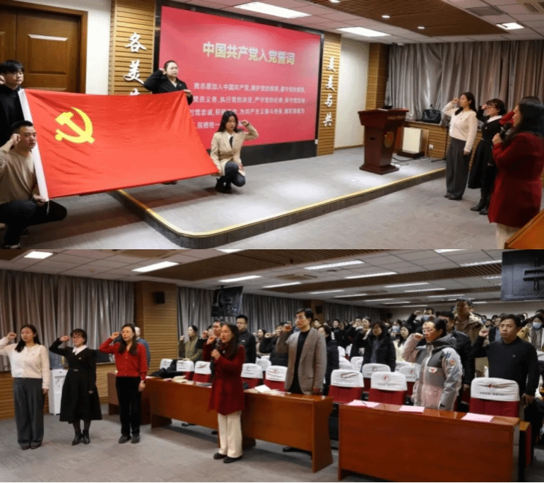 在新党员入党宣誓仪式上,我校党委常务副书记佟丽娟领誓,全体党员面向党旗庄严肃立,举起右拳,铿锵有力地表达了对党的无限忠诚和为党的事业奋斗终生的决心。