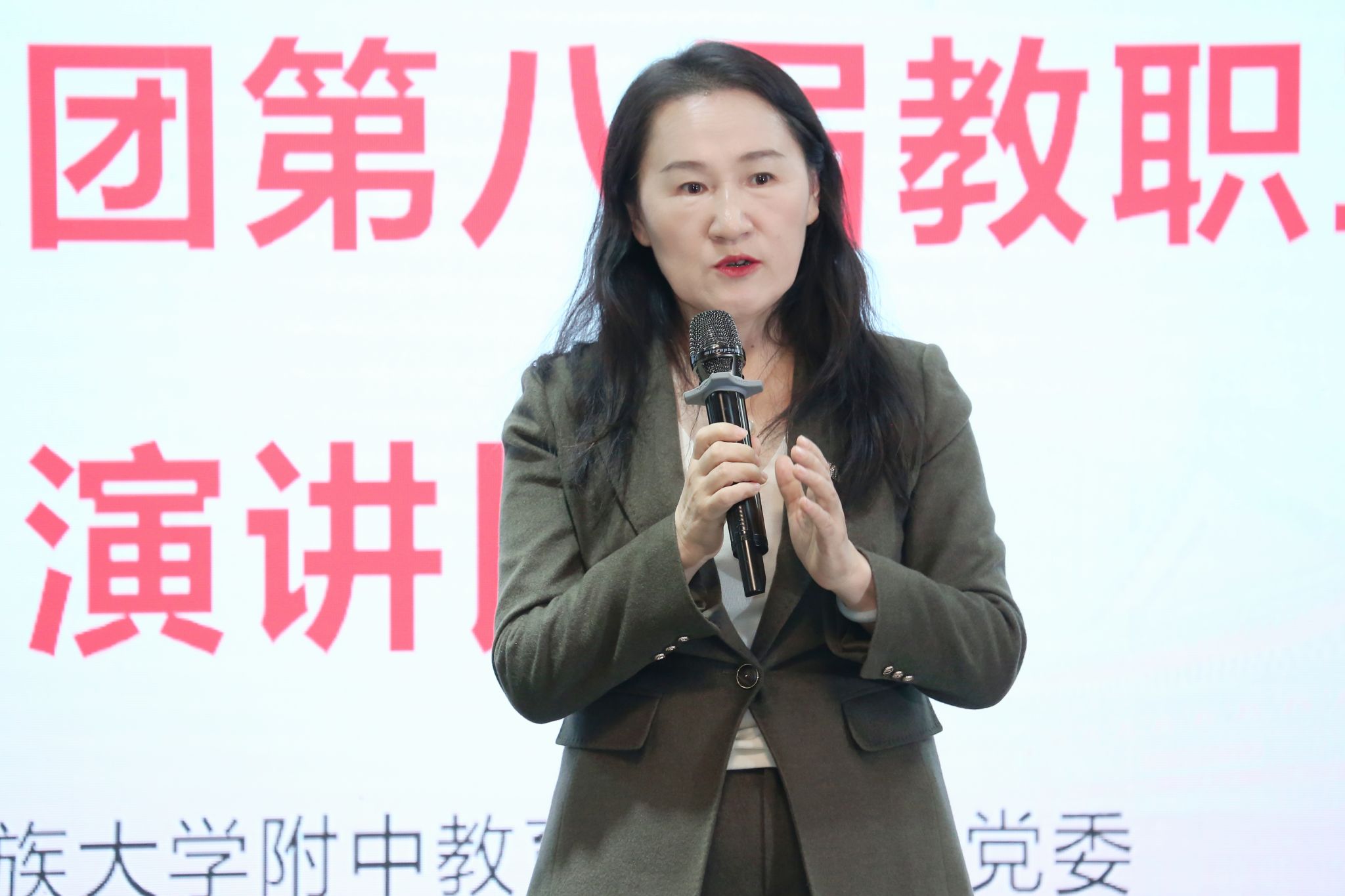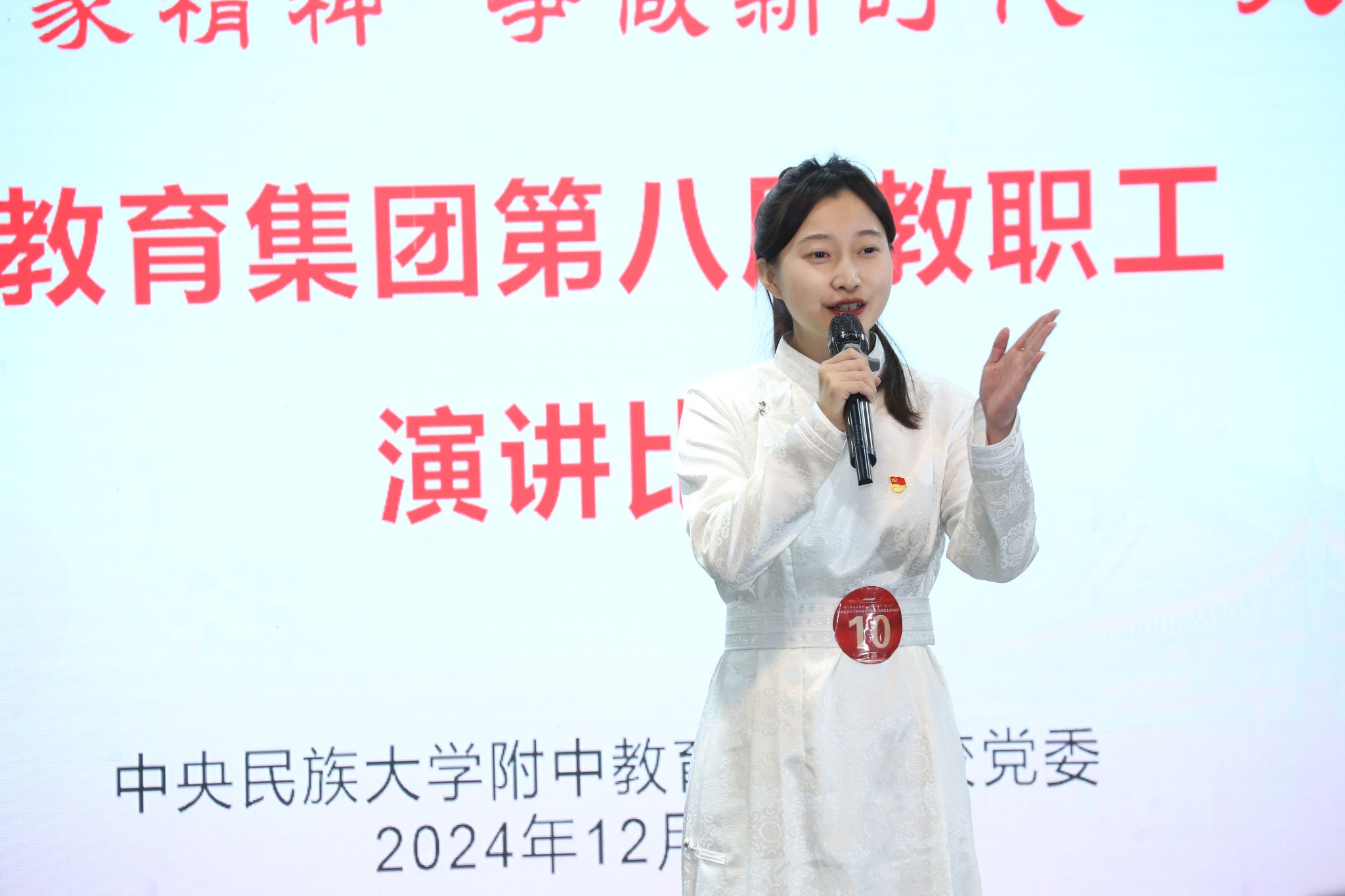 中央民大附中贵阳学校吴雅倩老师以《年轻是我们的本色 奋斗是我们的底气》为题,讲述了个人成长与学校发展的历程,展现了年轻教师以活力与奋斗为基石,在教育道路上勇往直前,书写青春华章的育人故事。