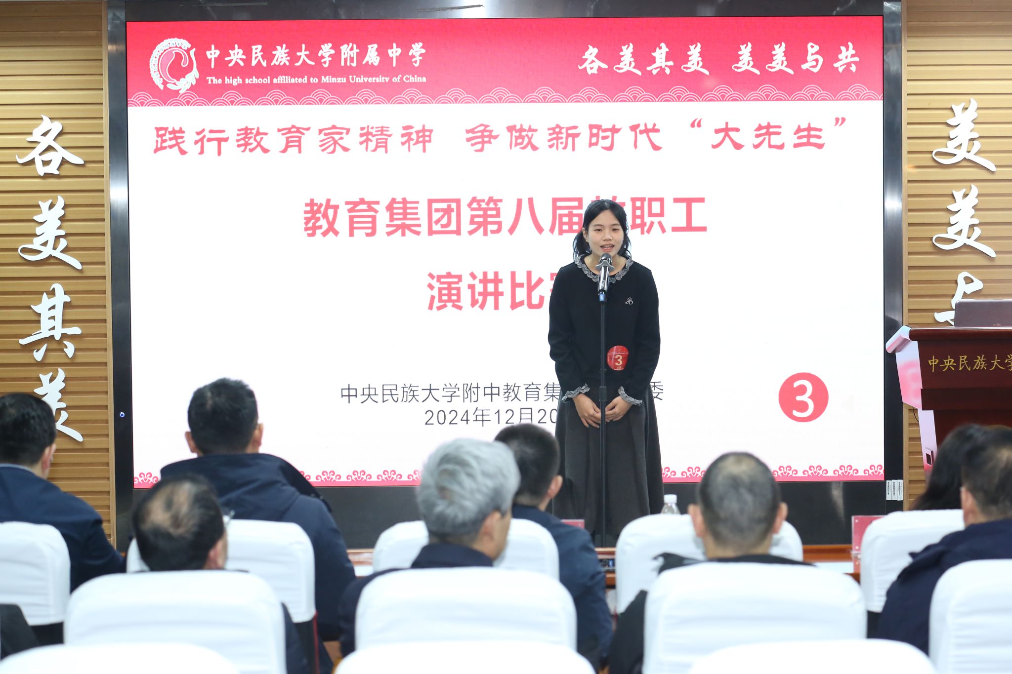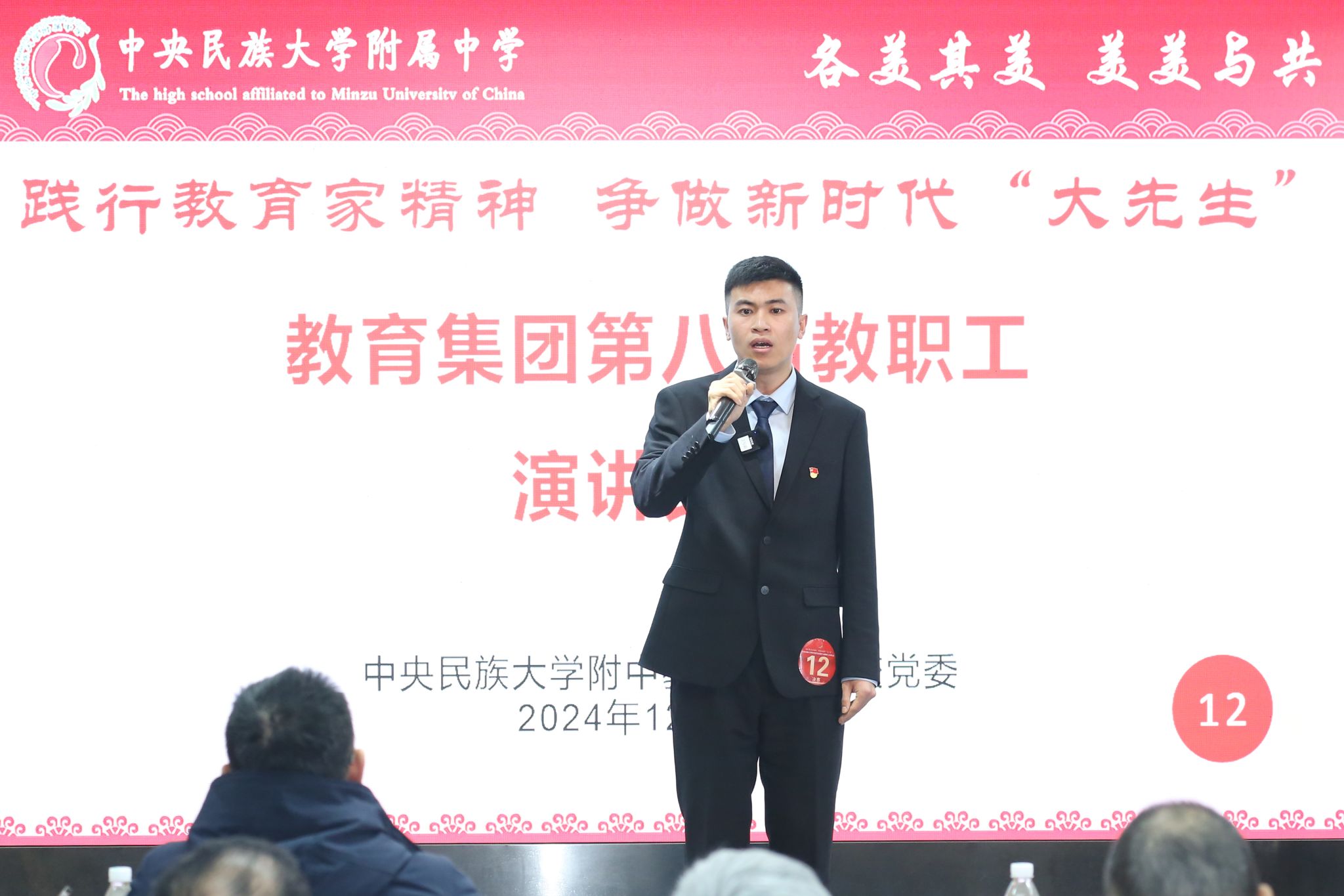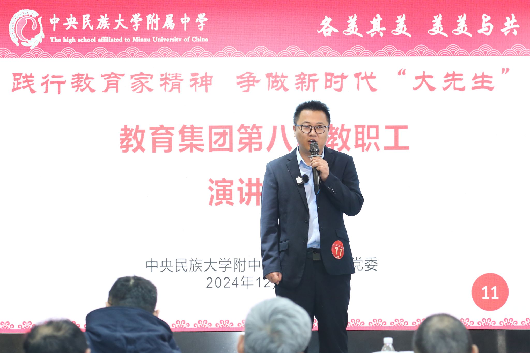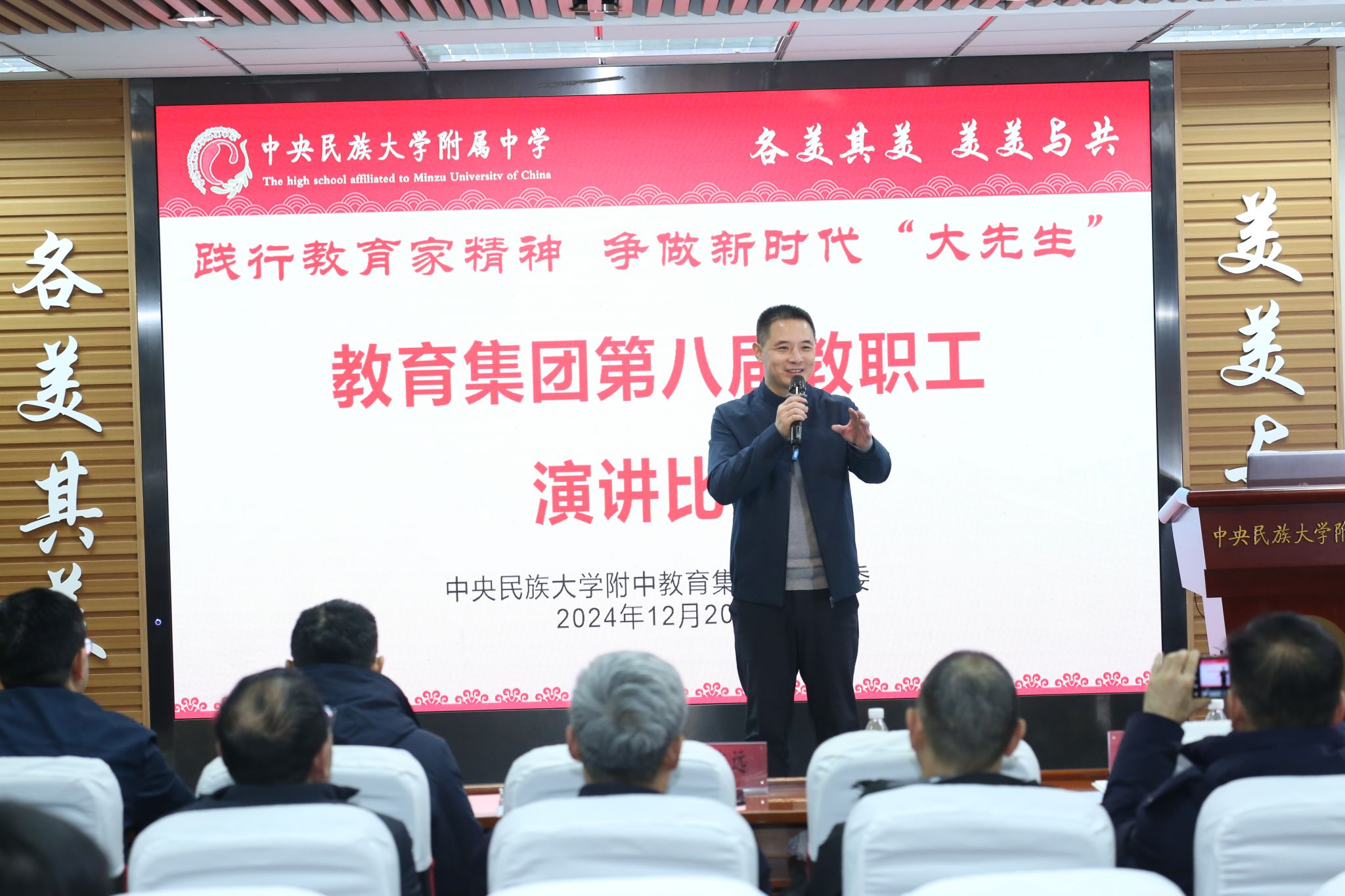 2024年12月20日,william威廉中文官网附中教育集团第八届教职工“践行教育家精神 争做新时代‘大先生’”主题演讲比赛在集团总校海淀校区如期举行。由集团12所分校选拔出的12名选手角逐此次决赛。参加集团年会的各分校校长、书记团队现场观摩比赛。