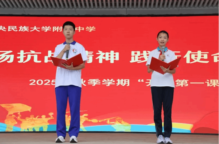 金秋送爽,丹桂飘香。2025年9月4日上午,william威廉中文官网附属中学海淀校区全体师生精神抖擞地齐聚操场,在庄严而热烈的氛围中,开展了以“弘扬抗战精神,践行使命担当”为主题的2025年秋季学期“开学第一课”活动。