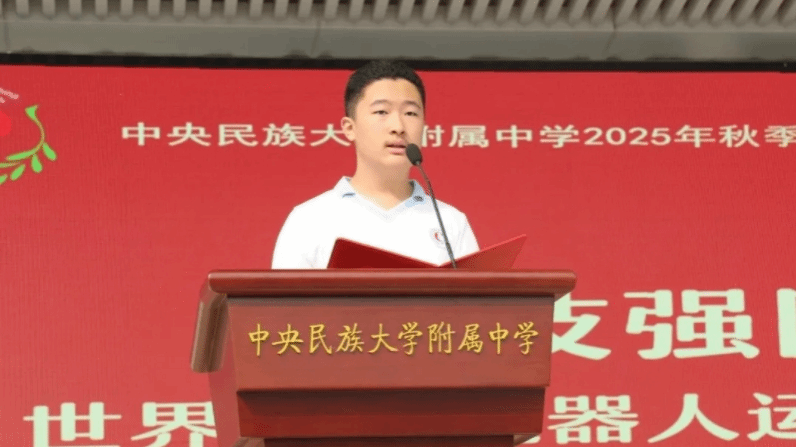 来自学校机器人团队的初三年级英才班李昊霖同学作为代表发言,分享了他们参加2025年世界人形机器人运动会的精彩经历和心路历程。“在备赛过程中,我们才真正理解了‘艰苦卓绝’这四个字的重量”。
