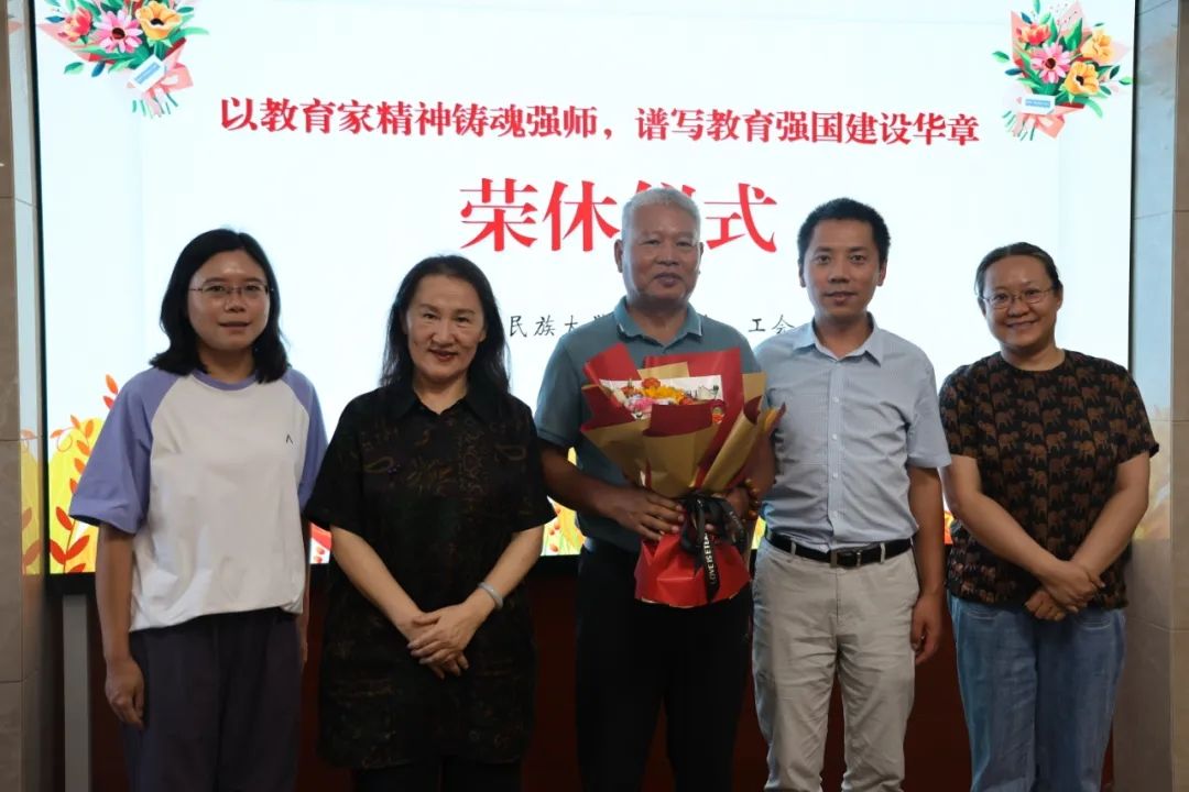活动最后,在职教职工代表向从教30年教师献上鲜花,并合影留念,现场气氛温馨融洽。