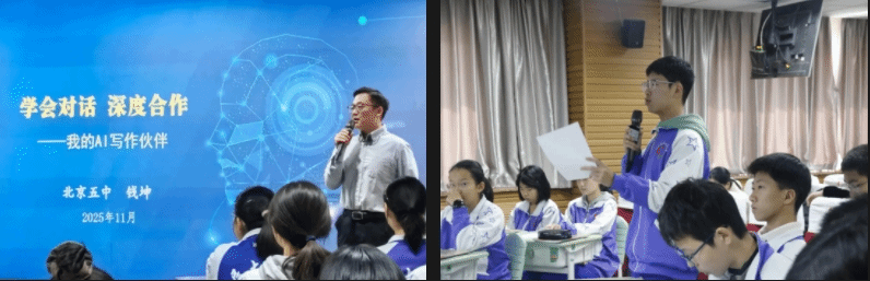 北京市第五中学钱坤老师讲授的《学会对话,深度合作——我的AI写作伙伴》一课以“人机协创”为核心理念,通过“比较差异—凝练要素—优化指令”三段式教学设计,培养学生的批判性思维与高阶表达能力,为智能环境下的写作教学开拓全新范式。