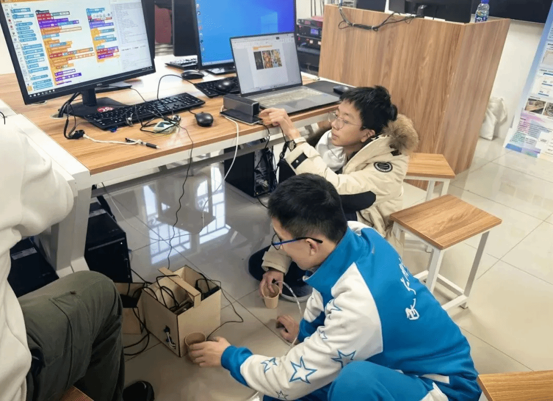 开营以来,学子们迅速投入状态,从项目主题确定、方案设计,到硬件搭建、程序调试,再到作品优化与结题展示,完整经历了科技创新的全流程。课堂上,他们专注聆听指导教师的专业讲解,熟练掌握传感器接线、逻辑编程等硬核技能;实践中,小组成员明确分工、高效协作,有人负责编程调试,有人专注硬件搭建,有人梳理研究日志,在一次次尝试与改进中攻克技术难题。