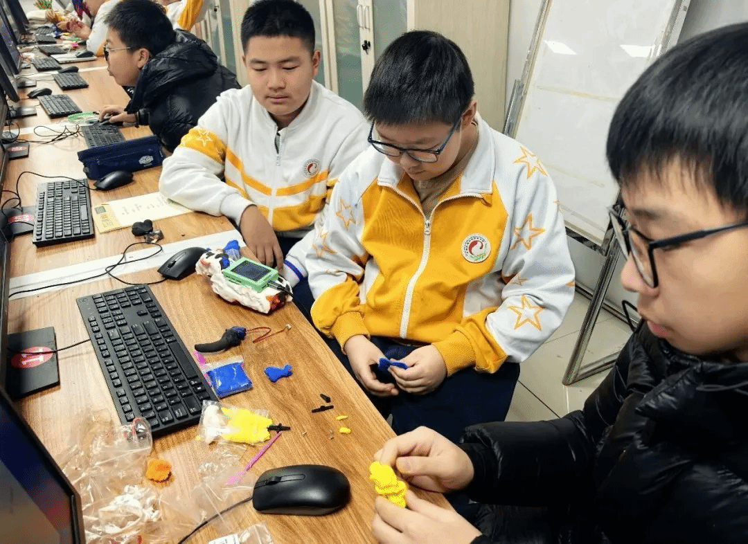 寒冬启智,科创筑梦。近日,2026年初中部开源硬件创意智造冬令营圆满落下帷幕。34名怀揣科技梦想的初一、初二学子,分成14个小组并肩作战,历经数日的沉浸式学习与实践,最终成功孵化出11组兼具创意与实用性的智能硬件作品,用热爱与坚持书写了一场精彩的科创之旅。